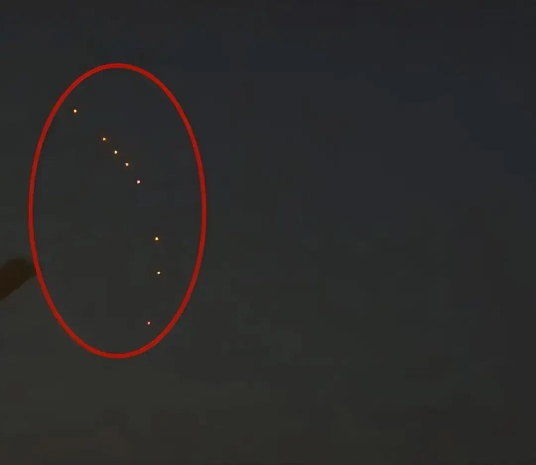 这次没有火光,没有爆炸,但更诡异:两排共十几个红色光点,整齐排列,静止悬停在夜空中,持续半分钟后突然全部熄灭,凭空消失。