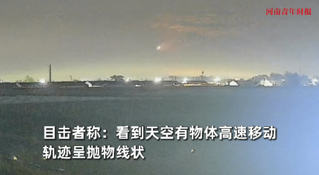 视频里,一个明亮的光点划破夜空,轨迹呈明显的抛物线,速度远超普通飞机。随后,一道火光从地面升起,直冲云霄,与空中火球“对撞”,瞬间炸出一团巨大的火球,碎片四散,场面相当震撼。