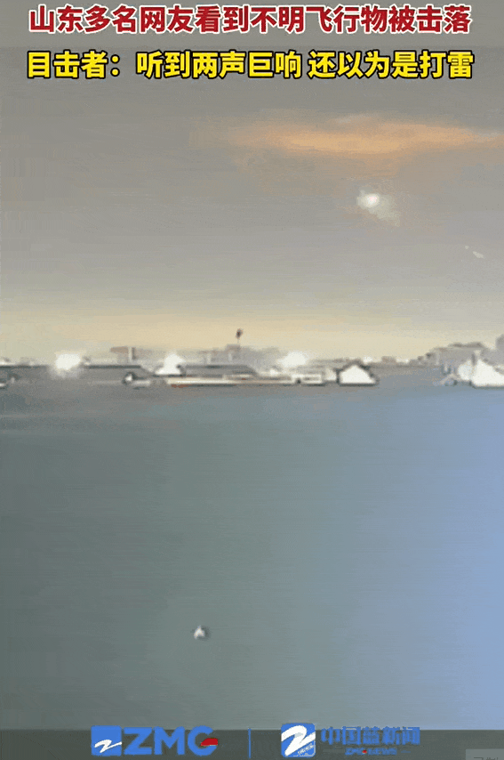 先是山东多地网友拍到夜空中一个火球高速飞行,紧接着另一个火球从地面腾空而起,两者相撞后炸出巨大火光,还伴随着两声巨响,像打雷一样。