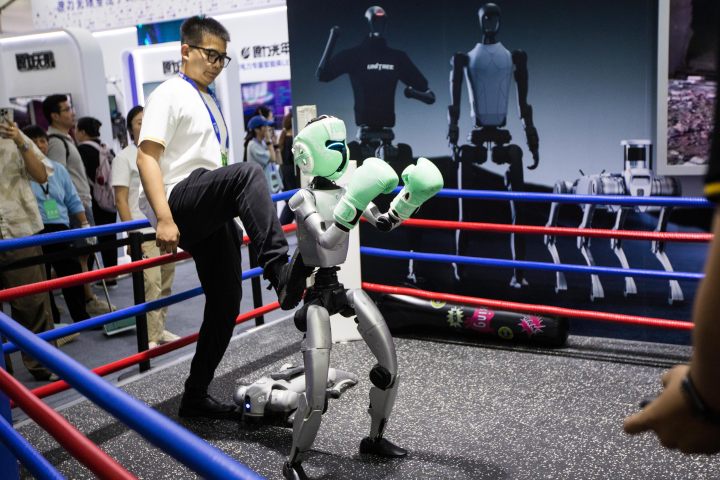 这次,宇树把G1带到了云栖大会,现场演示八角笼里的人机大战。你猜猜最后谁能赢?