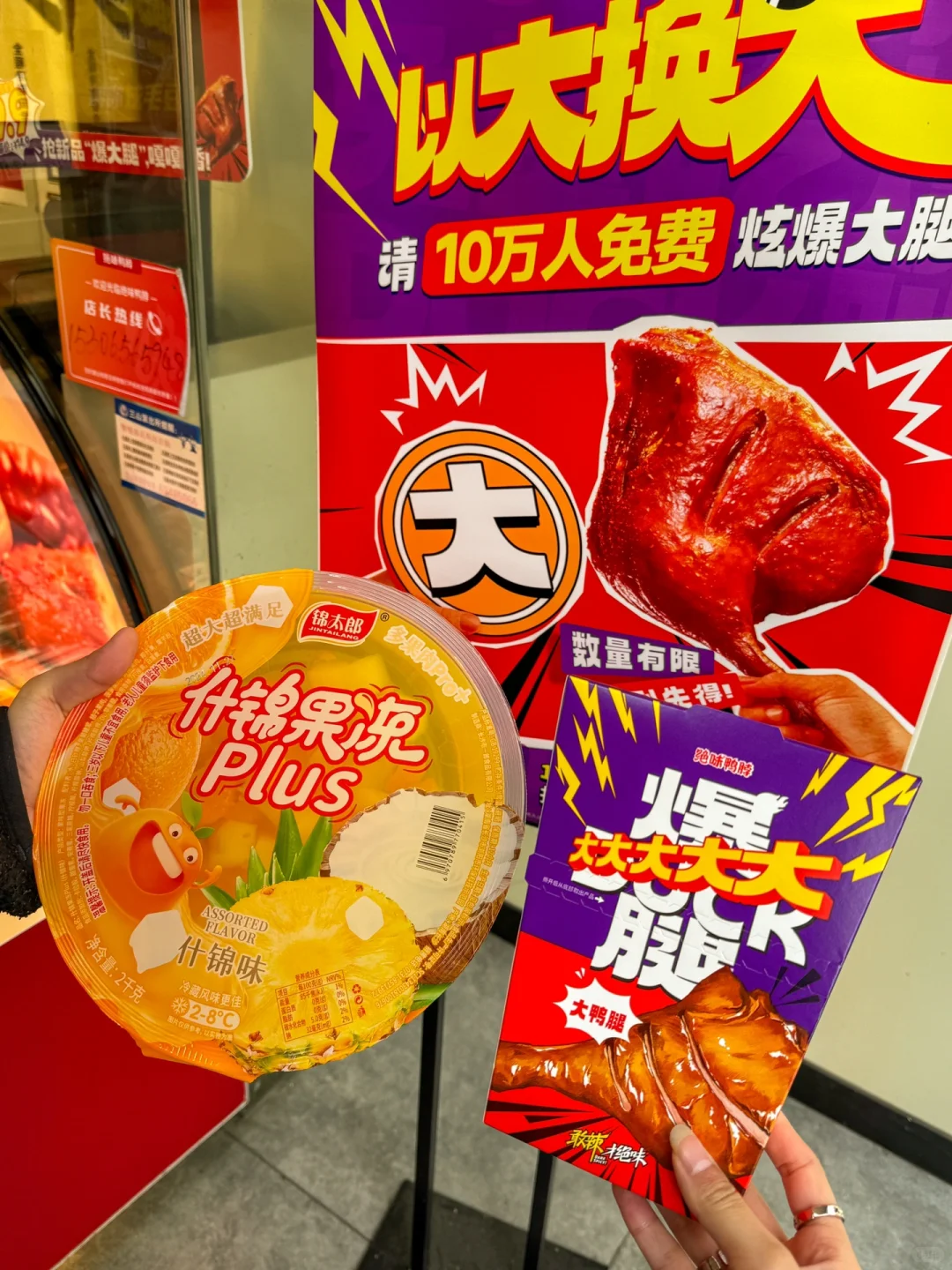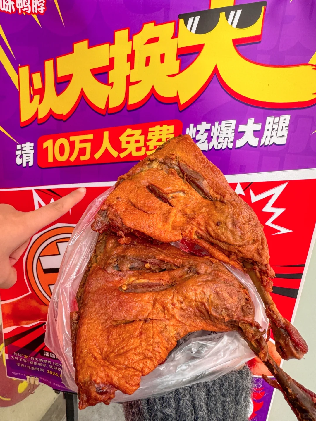 果然玩抽象还得是绝味啊😅😅😅 “以大换大”必须拿出我一直珍藏的4斤重大果冻了!!店员都拿出手机拍照了🤳说没见过这么大的果冻哈哈哈 只要带上各种意义上的“大”物就能免费换绝味新品爆大腿🔥🔥!!! 此刻发挥大家想象力的时刻到了哈哈 这大腿真的比脸还大!!!不愧是XXXL版!