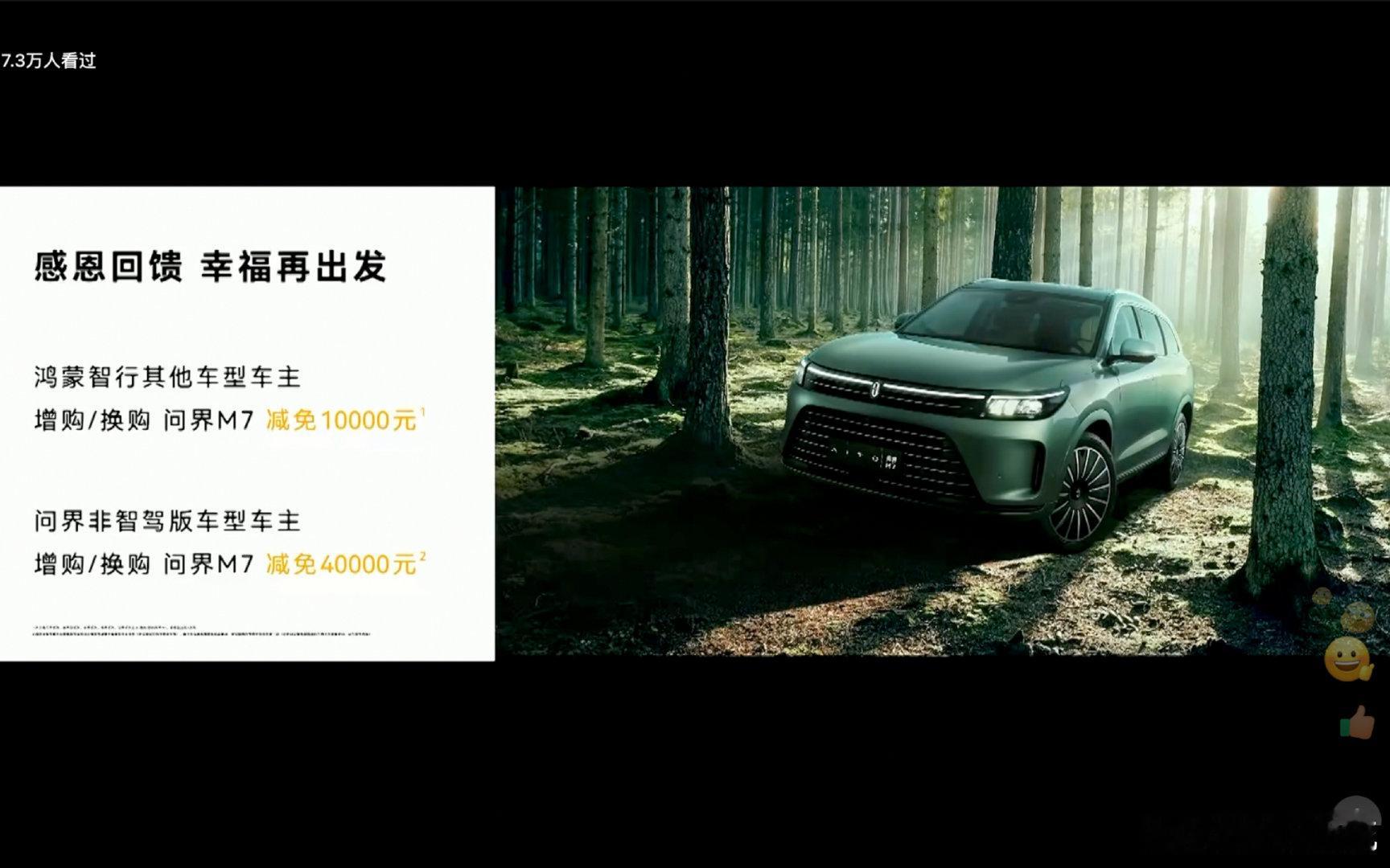 余承东与何利扬共保问界M7月产能3万 老用户现在能够有这么大的一些福利,其实我觉