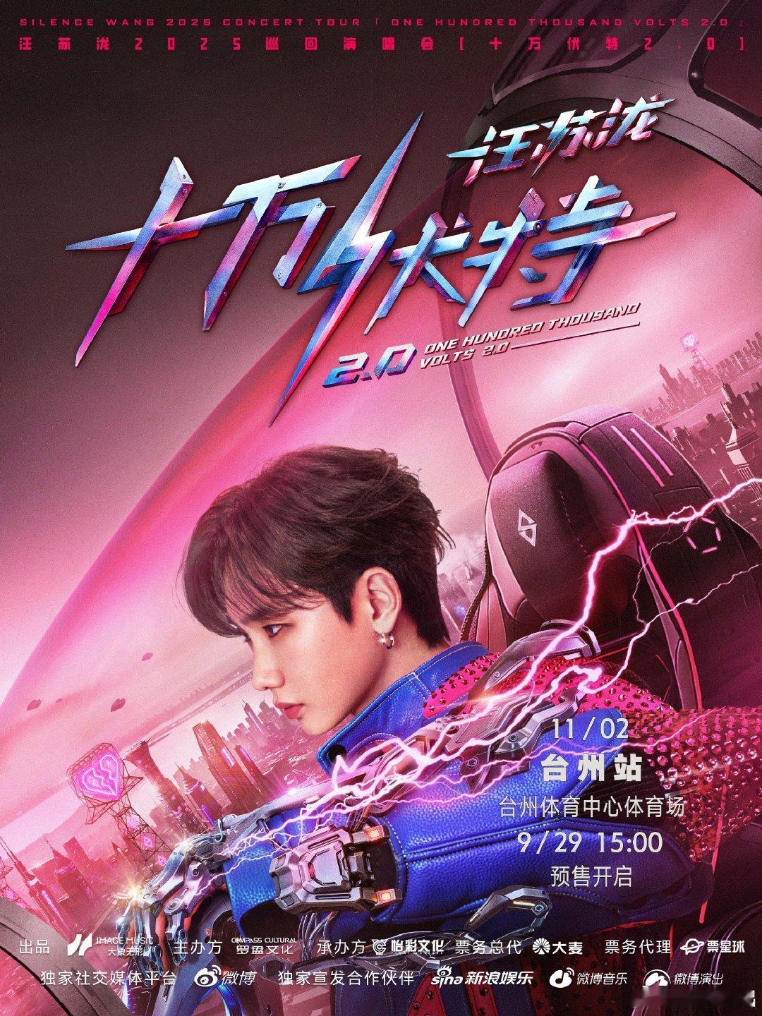 汪苏泷台州演唱会官宣预售 哇!汪苏泷的台州演唱会预售已经准备开始了,小伙伴们真的是不要错过了呀,此次汪苏泷“十万伏特2.0”台州站演唱会将于2025年10月31日至11月2日在台州市体育中心体育场举办,期待这一次的舞台呀!汪苏泷演唱会台州站预售时间