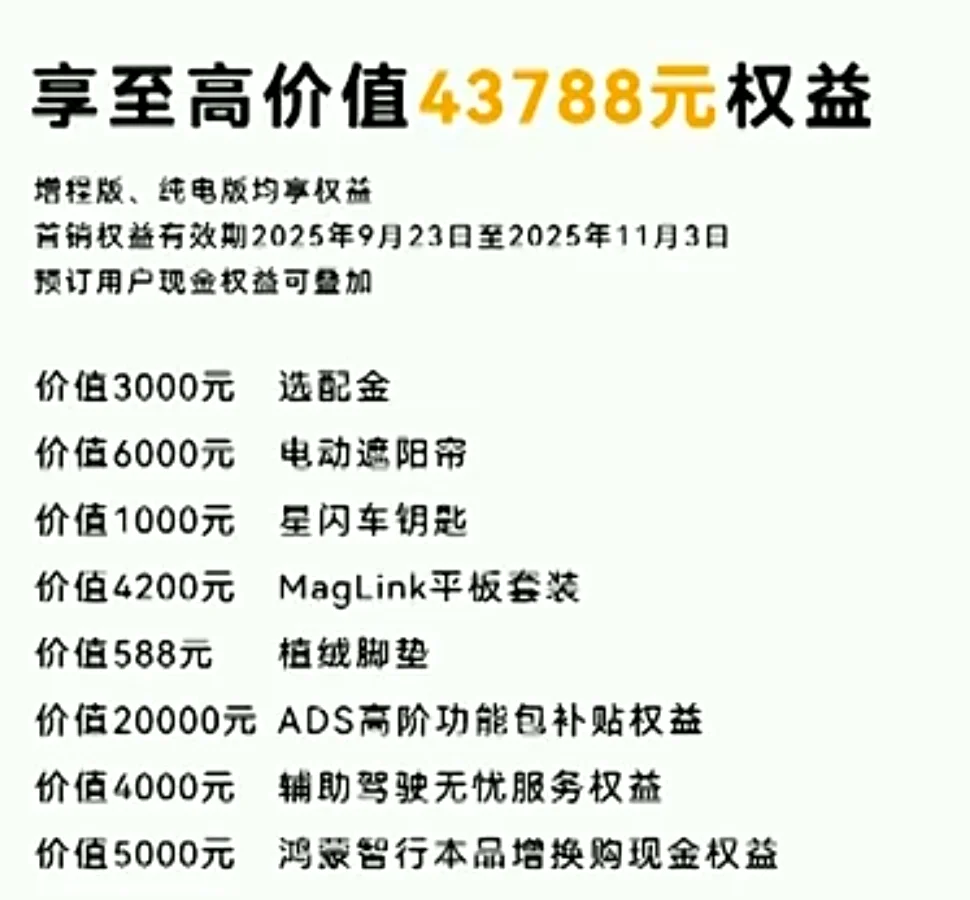 尚界H5价格公布 我小订选的增程版Max 17.98万元 比预售价便宜1万元 还送一个后排MagLink平板套装 正好要换车,冲了! 尚界 H5 增程Max 鎏金黑外观颜色 赤茶橘内饰颜色20英寸多辐轮毂 注:智驾软件包提完车 30 天内需另外支付1.2万元
