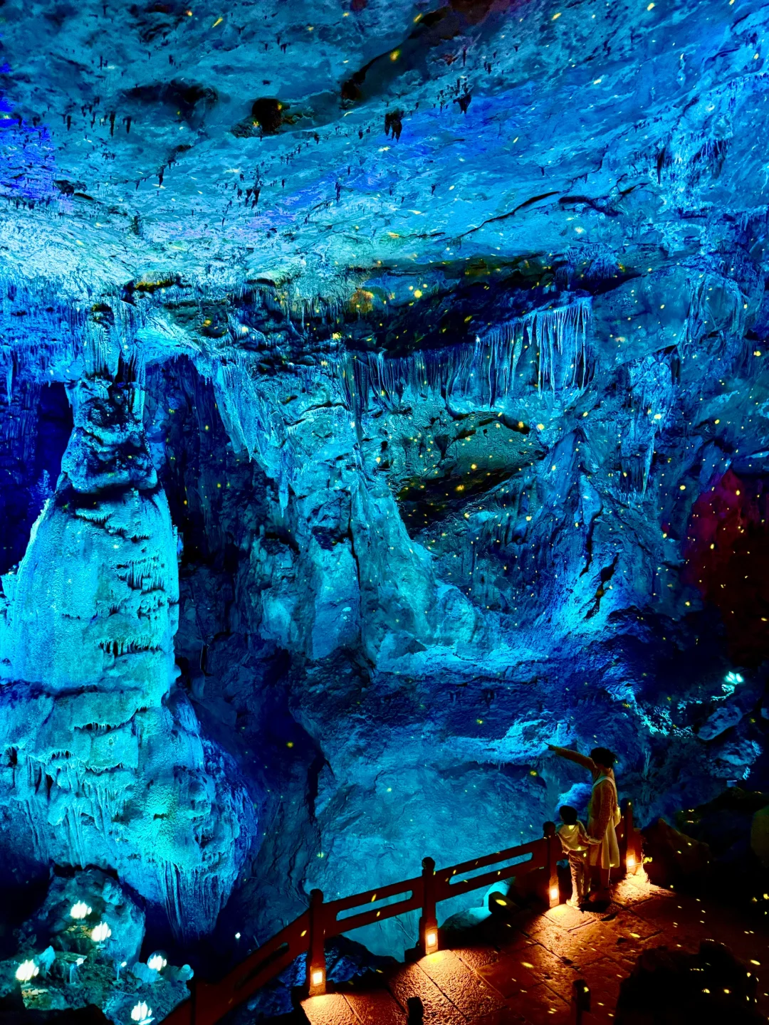 天然空调房!洞内凉快又梦幻,钟乳石在灯光下超美