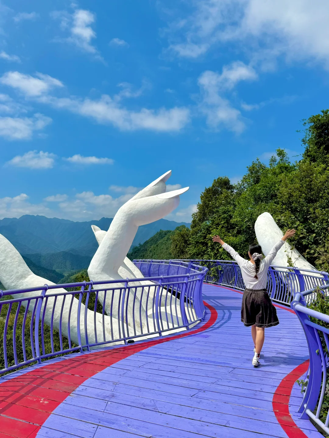 仙气十足!紫色栈道被巨手托在山谷之间,拍照太美了