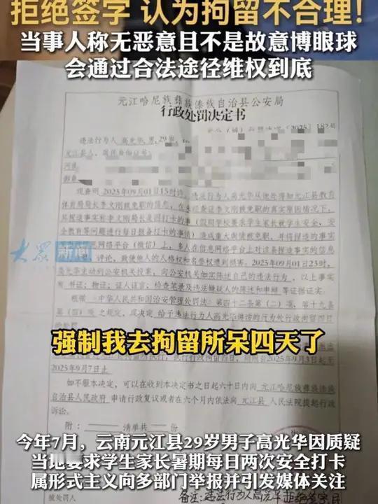 家长发圈质疑教体局长后被拘引关注 近日,一名家长因在朋友圈质疑当地教体局长,随后被警方拘留,此事迅速引发社会广泛讨论。 公众普遍不解:正常表达质疑为何会触发拘留措施?目前,涉事部门尚未详细说明拘留的法律依据与具体缘由。不少人呼吁,相关部门应尽快公开事件细节,保障公民合理表达诉求的权利,确保处理过程透明合规。
