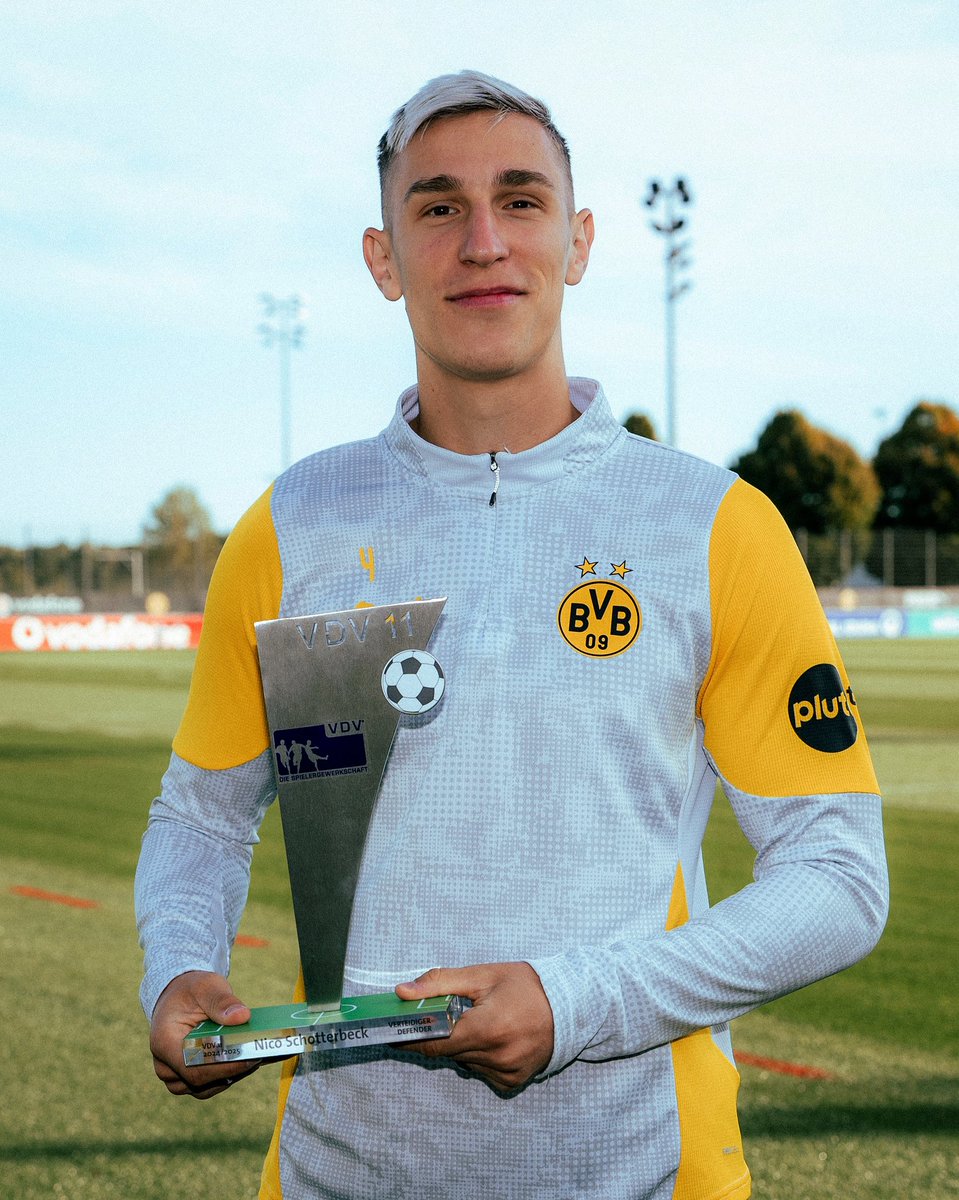 施洛特贝克入选VDV赛季最佳阵容,多特官方发布其与奖杯合影