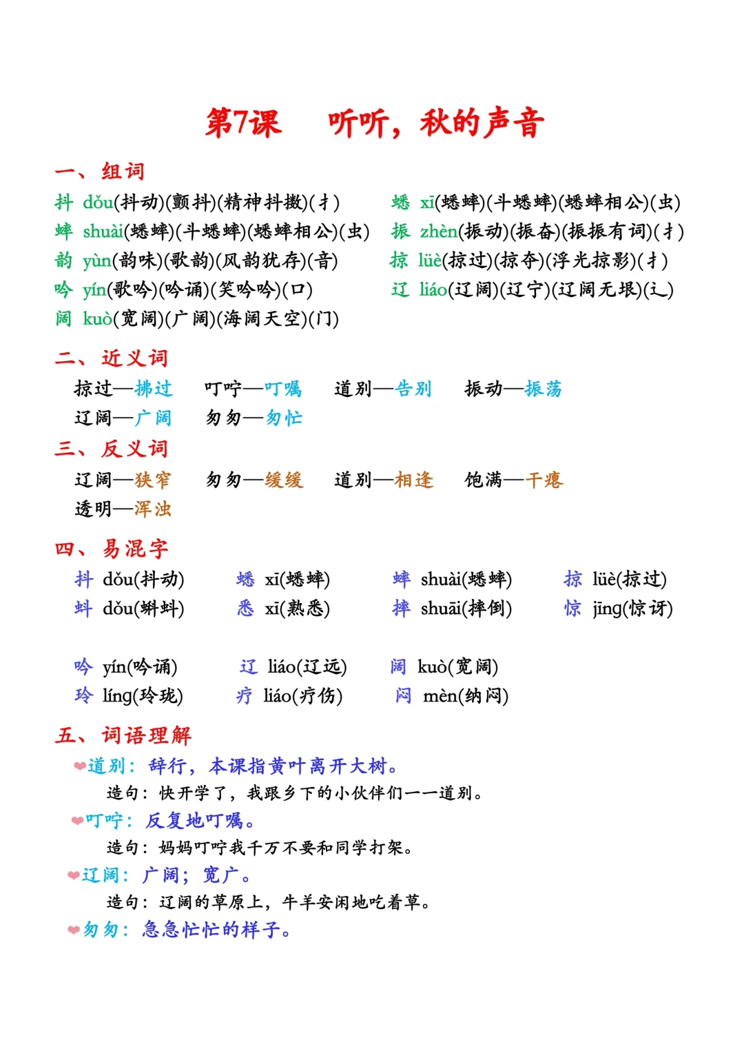抖 dǒu(抖动) 蟋 xī(蟋蟀) 蟀 shuài(蟋蟀)