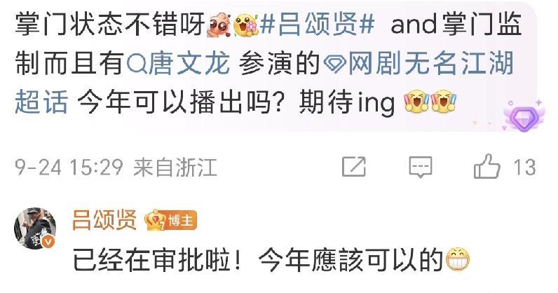 吕颂贤唐文龙莫家尧相聚! 9月24日,吕颂贤在社交平台晒出了与兄弟唐文龙、莫家尧是合照,兄弟聚在一起聊聊天,喝喝茶。 莫家尧退出演艺圈很多年。 这几位都是当年TVB相当不错的演员。评论区网友问与唐文龙一起参演的剧集可以播出吗? 吕颂贤回应已经在审批啦!这么看来快了,有点期待。