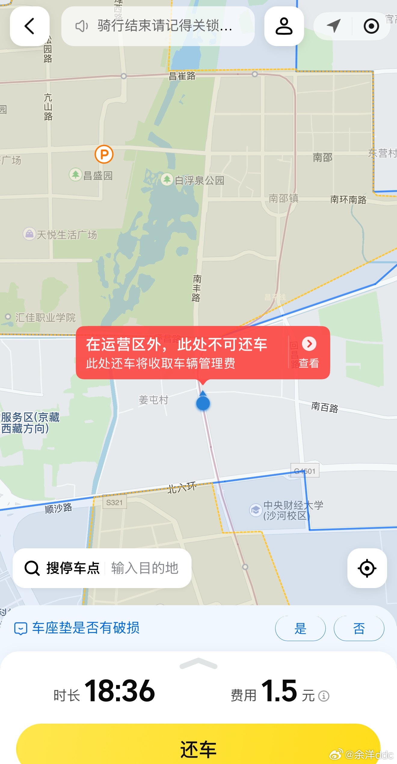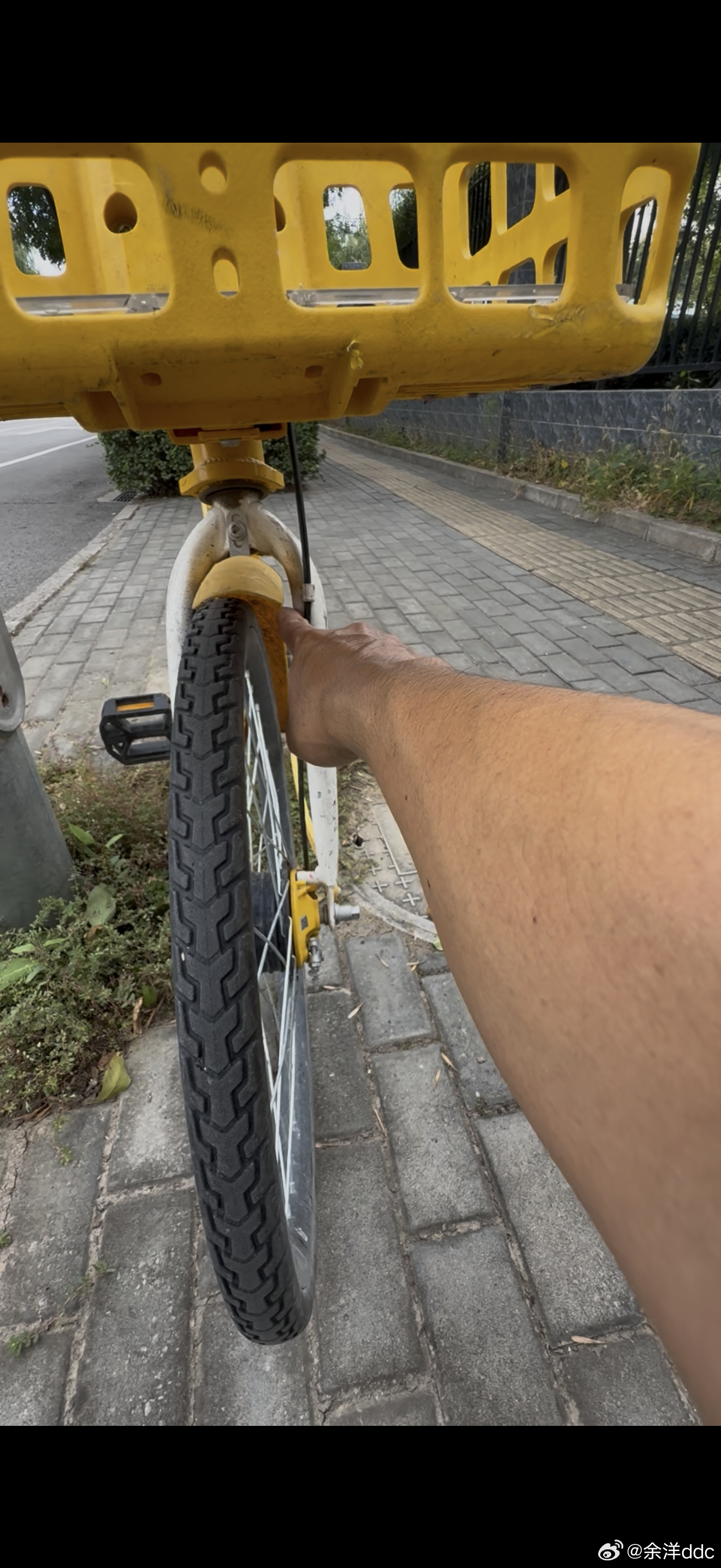 事故小黄车测评,前悬架受损,导致主销后倾角变得直立,回正力矩减小,稳定性变差,轮拱蹭大梁(挡泥板蹭车架),转向中心锁定,前轮有-2.5度倾角,左右转向特性不一致,松手快速往左跑偏,轮胎蹭前叉阻力增大,链条生锈传动效率降低,导致浪费粮食,不环保[喵喵],最主要我骑到了灰色地带,无法还车,前后都有,再坚持一下[泪奔]