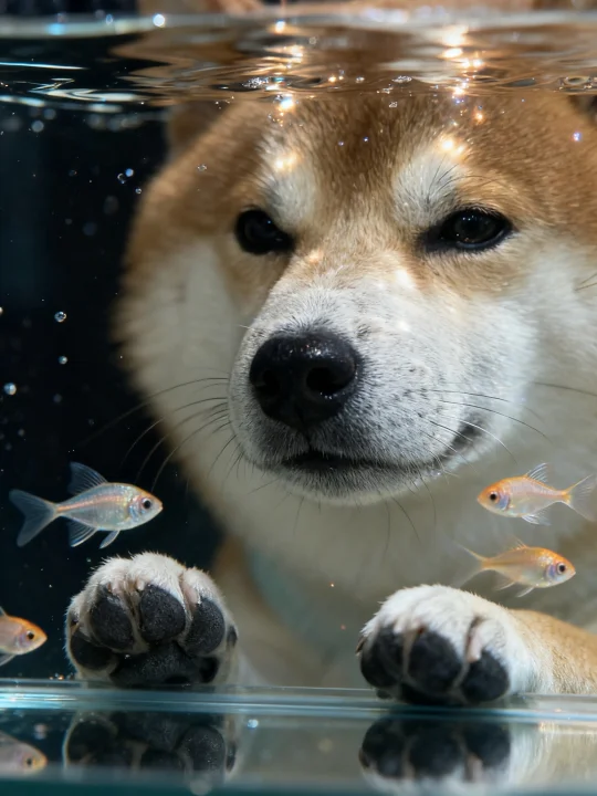 柴犬 会发光的鱼 想一口吃掉 柴犬宝宝 并不喜欢吃鱼