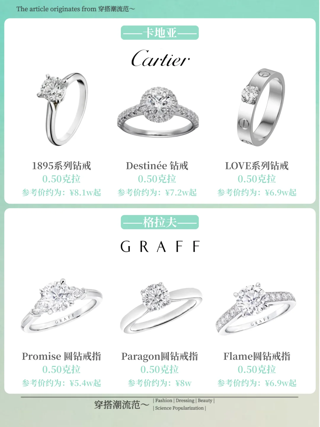 (注:以上价格仅供参考,因钻戒色泽净度等因素多变,故实际售价请自行了解确认)