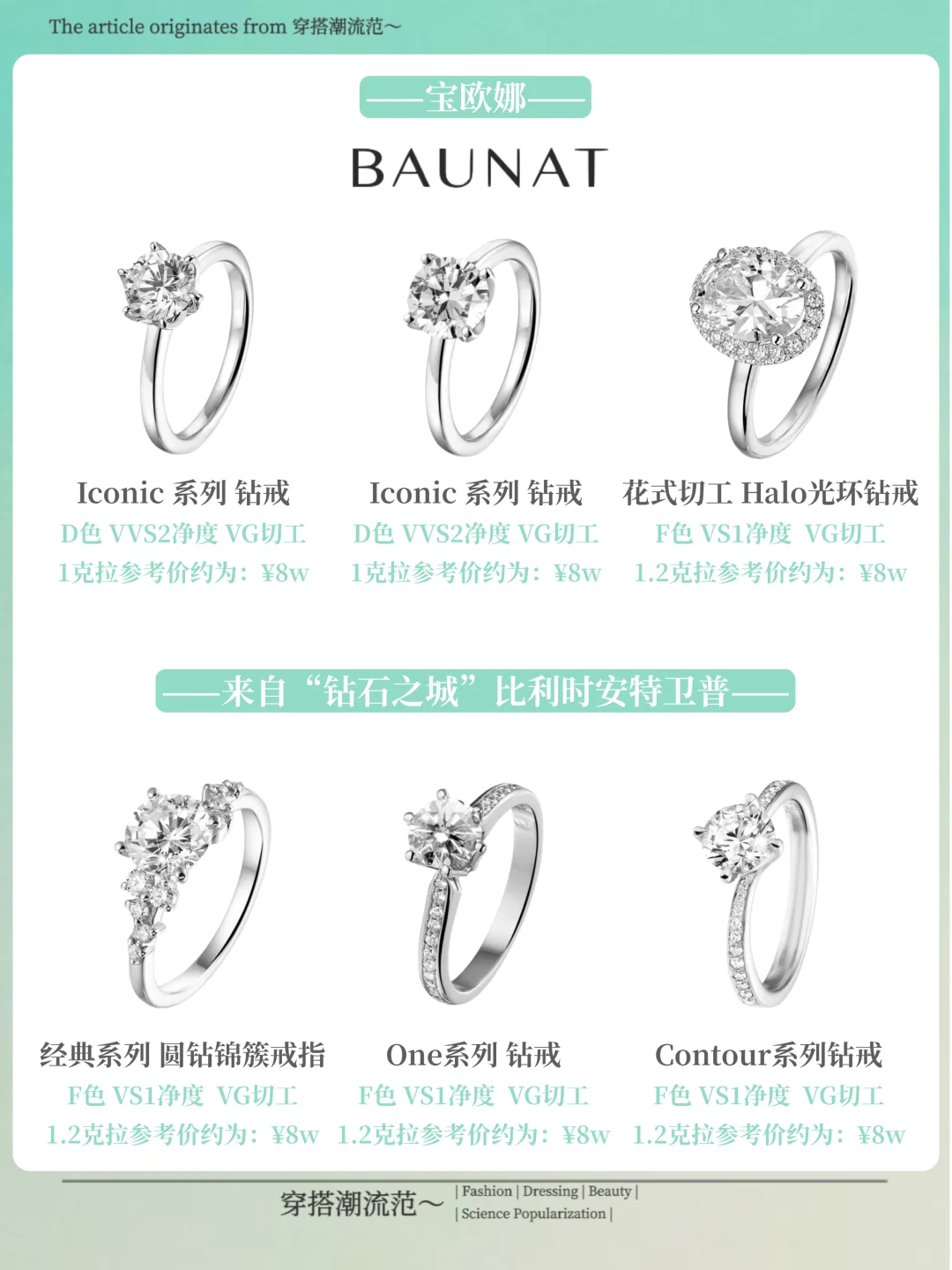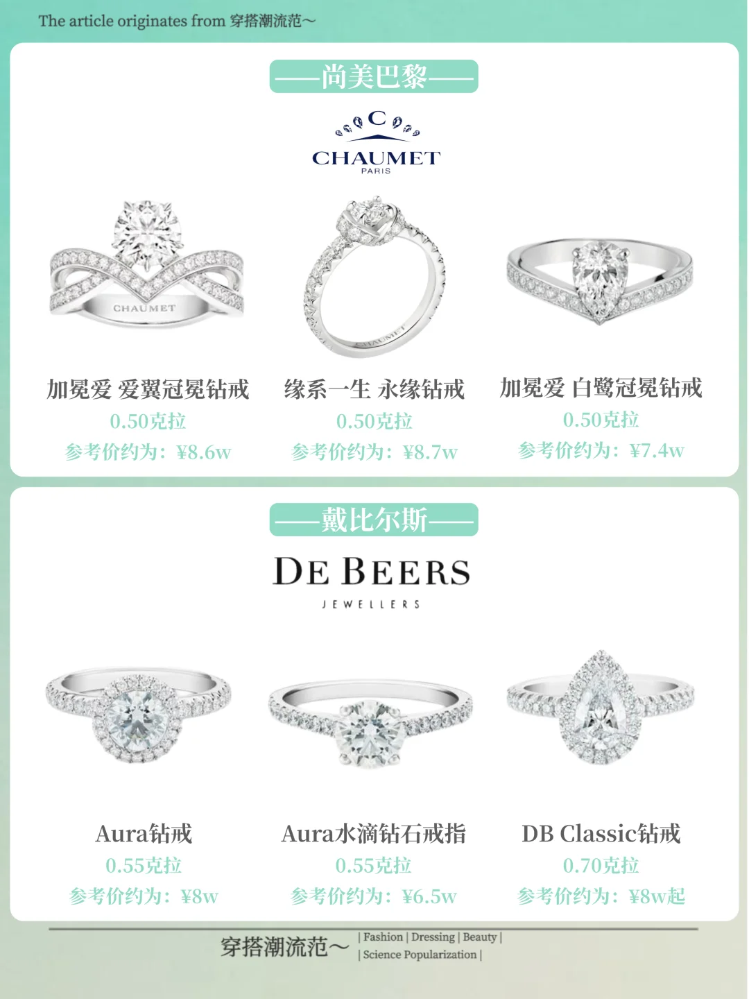 以上款式,从国际大牌到新兴热门品牌,从简约时尚风到华丽重工风,都有所顾及!在预算范围内,根据自身实际情况,综合考虑品牌价值、款式风格和性价比,会更容易选到中意的钻戒哦~