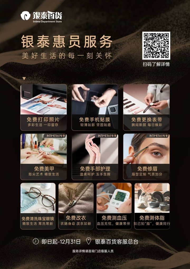 比如从去年起新增的体验式服务:免费的手部护理、美甲、更换表带、手机贴膜、珠宝眼镜清洗等,甚至还有免费的美食蛋挞、现场打印照片等深受年轻人喜欢的体验。