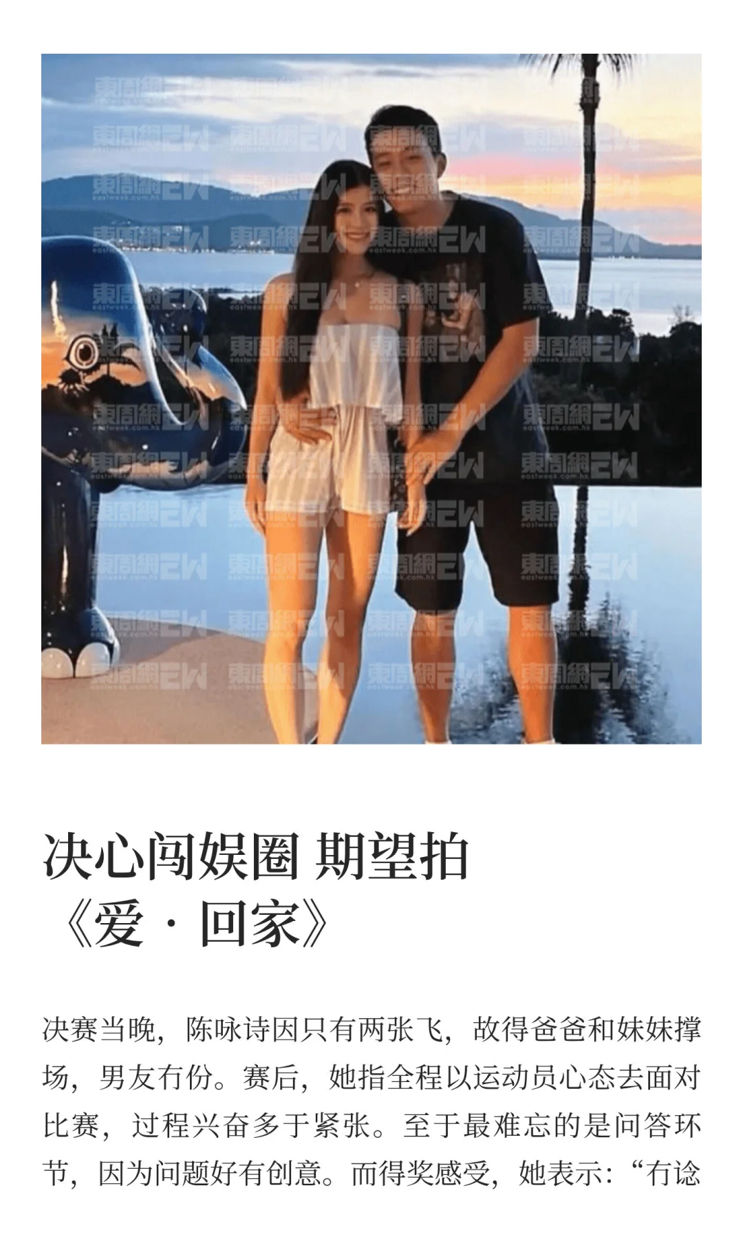 在感情路上,陈咏诗同样直接进取,大方认恋南加州大学的学霸男朋友Martin。本刊独家获得两人的一批“放闪”相,陈咏诗以火辣性感造型成功俘虏男友,当中更以露背真空大送秋波,冧爆Martin!