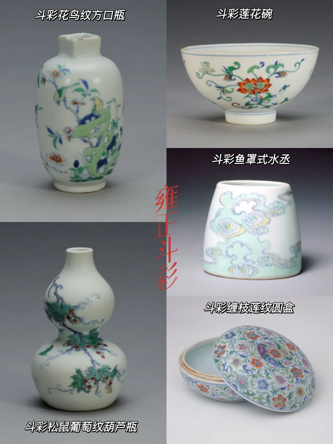 🔹这一时期的斗彩,代表了清代彩瓷的最高水准。在成化斗彩的基础上,雍正斗彩不仅延续了釉下青花勾线,釉上填彩的传统技艺,还引入粉彩画法,即增添了色彩层次,也突出了超然雅趣,可谓一举多得。