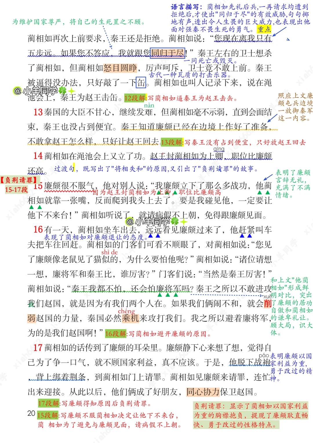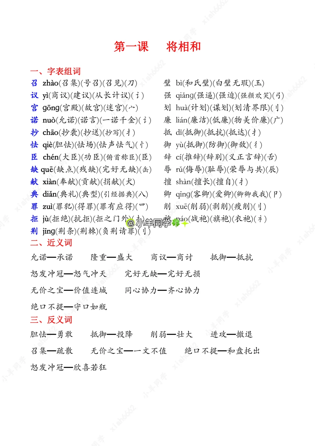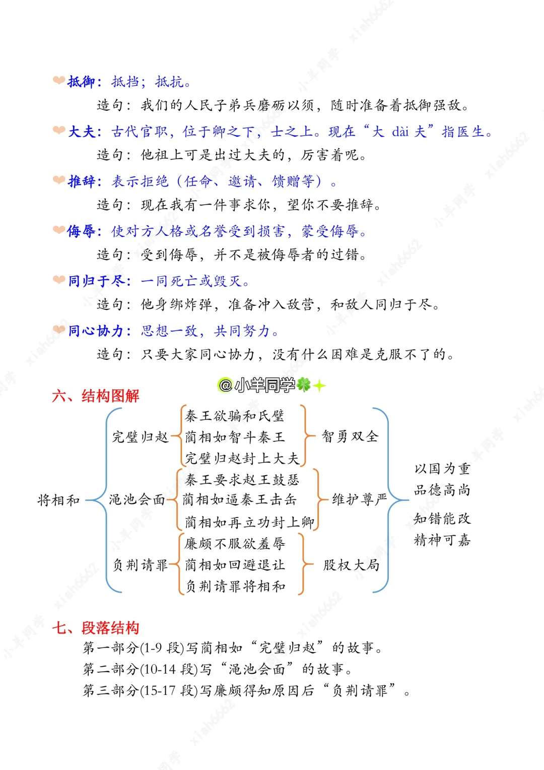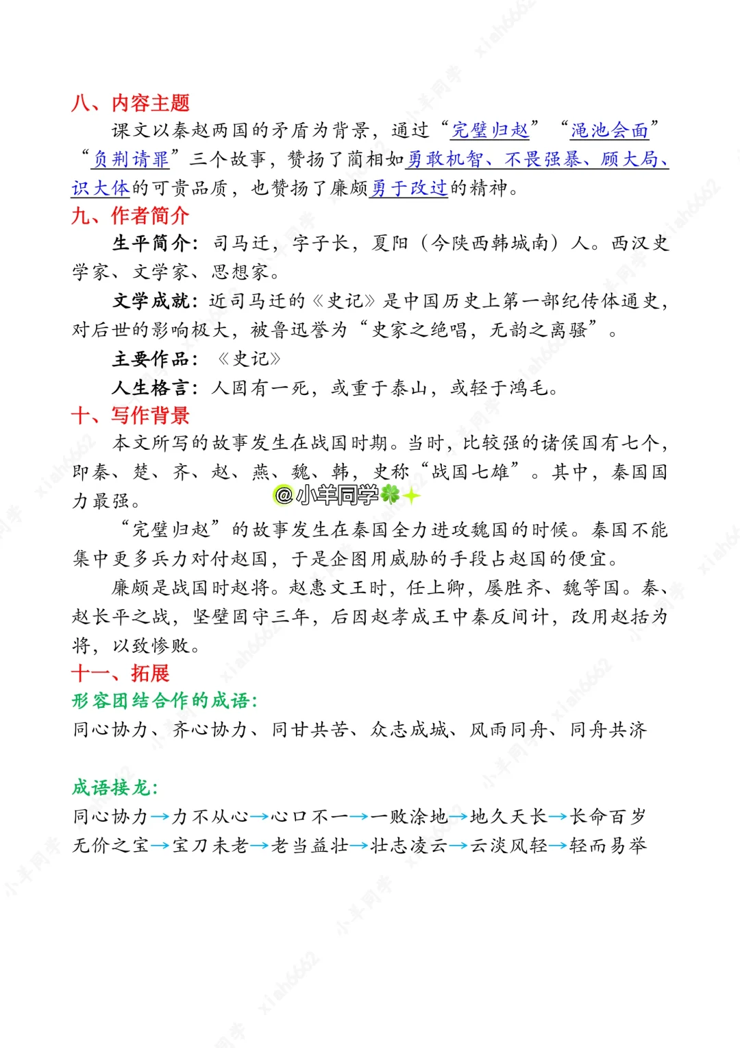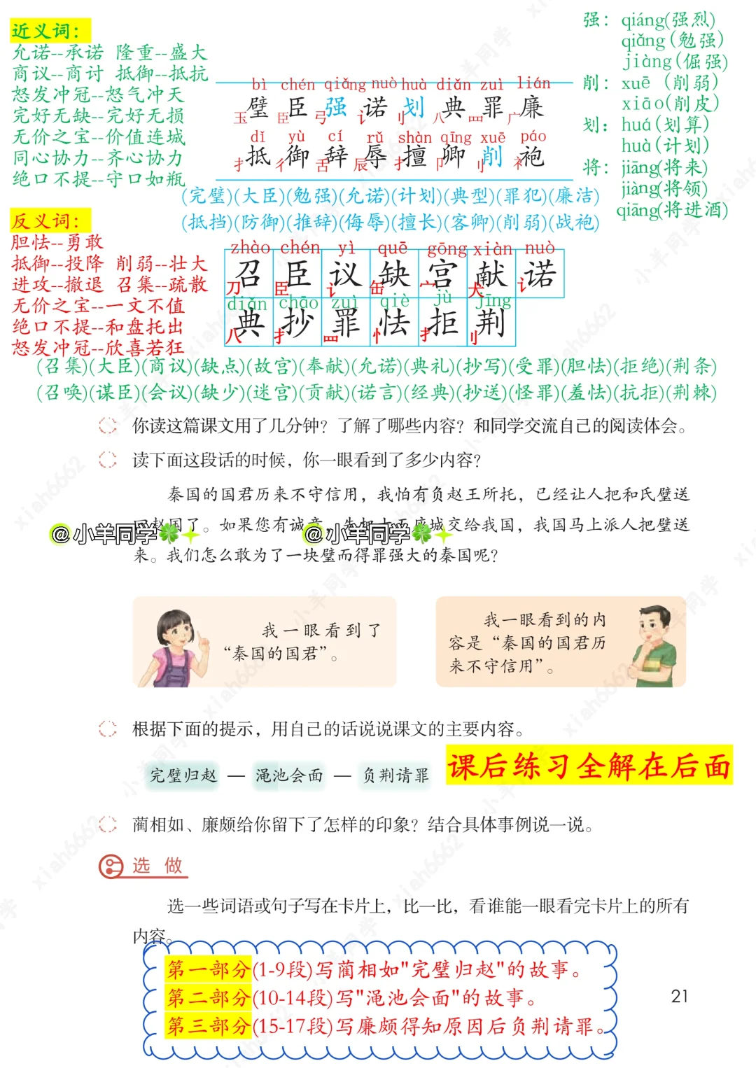 五年级上册🍀第6课《将相和》课堂笔记