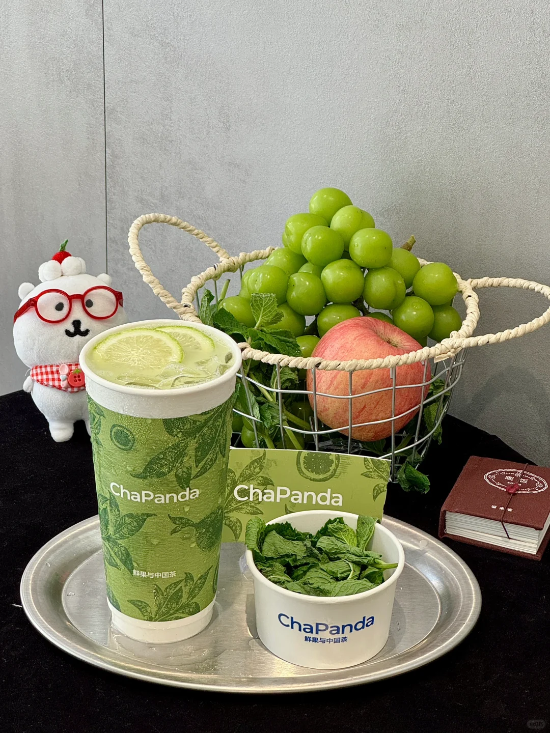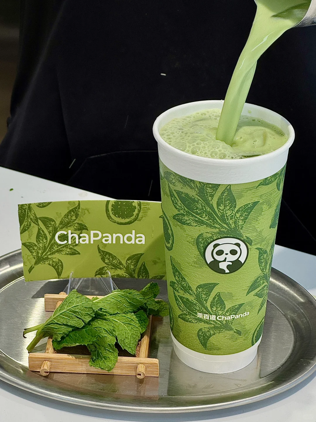 新鲜的薄荷青提榨汁➕抹茶液➕鲜牛奶🥛