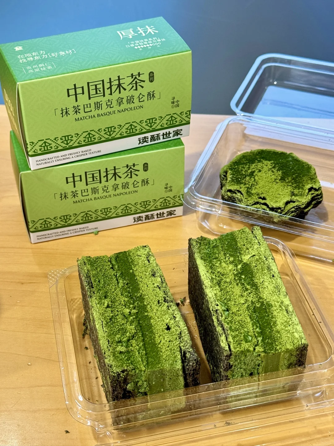 读酥世家你真的强的可怕!!! 抹茶控真的忍不了一点。。。。 抹茶巴斯克拿破仑酥!一口下去好吃到晕厥😭 一个拿破仑有五种口感,酥脆拿破仑皮➕抹茶巴斯克➕抹茶蛋糕➕抹茶奶冻➕抹茶奶油🧈 一口下去,口腔里都是抹茶香味散发开来~中间的抹茶奶冻Q弹嫩滑,抹茶浓郁回甘,丝滑细腻! 🍵抹茶流心蛋挞酥 表皮铺满抹茶粉,挞哦哦酥的掉渣,里面的抹茶奶油丝滑浓郁,一个下去根本不会腻~