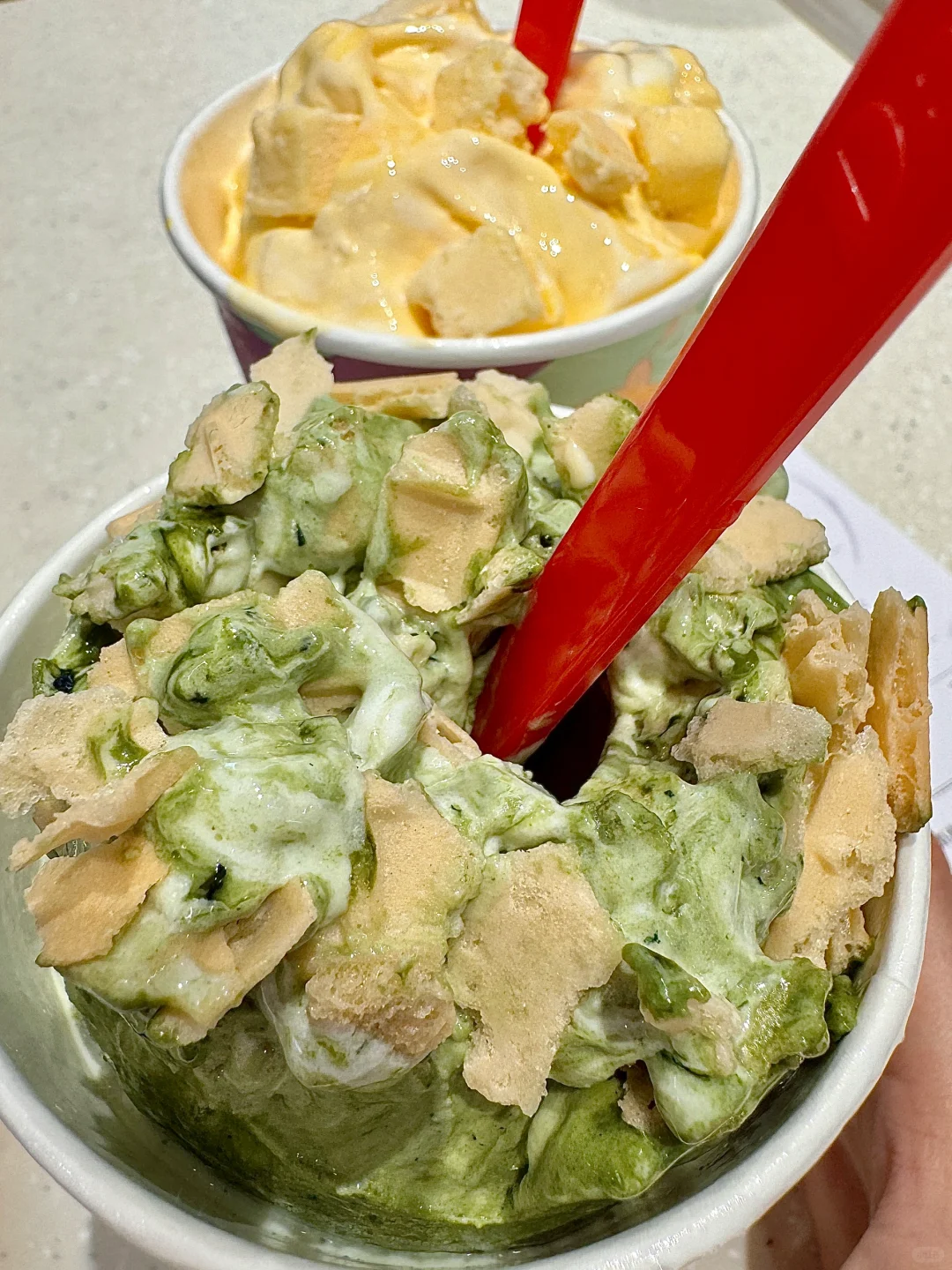 是我是我!本来觉得会很黑暗!!!! 吃了之后发现真香警告⚠️研发团队进来挨夸! 入口清凉爽口还带着淡淡的柠檬香🍋 我让店员把小料放顶上了,没有搅拌这样吃起来更过瘾了~ 还点了个百香果柠檬口味,也很适合夏天吃!