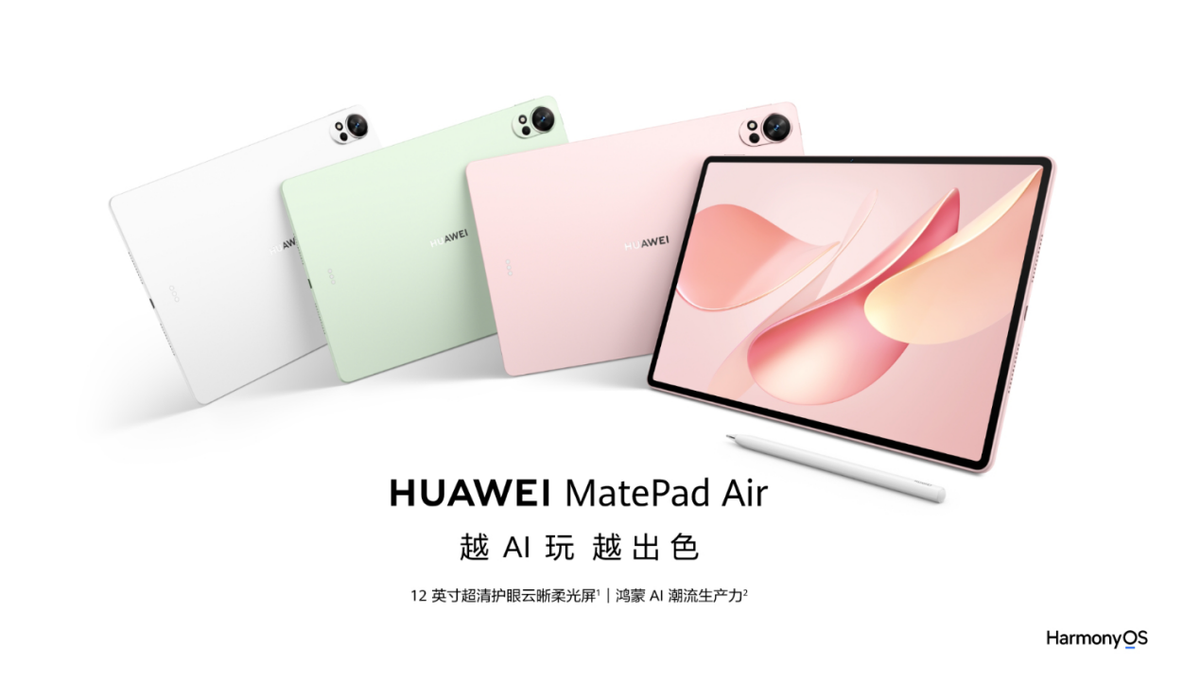 聚焦于学研人群和职场新锐,华为MatePad Air 2025款在轻薄设计、潮流美学与AI智慧体验之间取得了完美平衡。它同样配备了超清护眼云晰柔光屏,确保了出色的视觉体验。机身轻至555克,薄至5.9毫米,配合草木绿、樱语粉等多彩外观,尽显年轻活力。