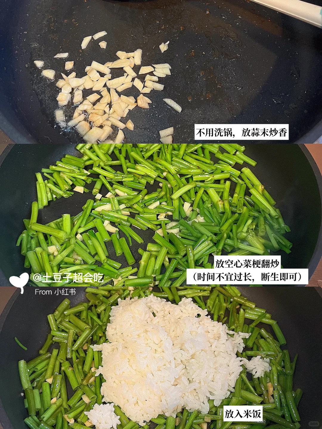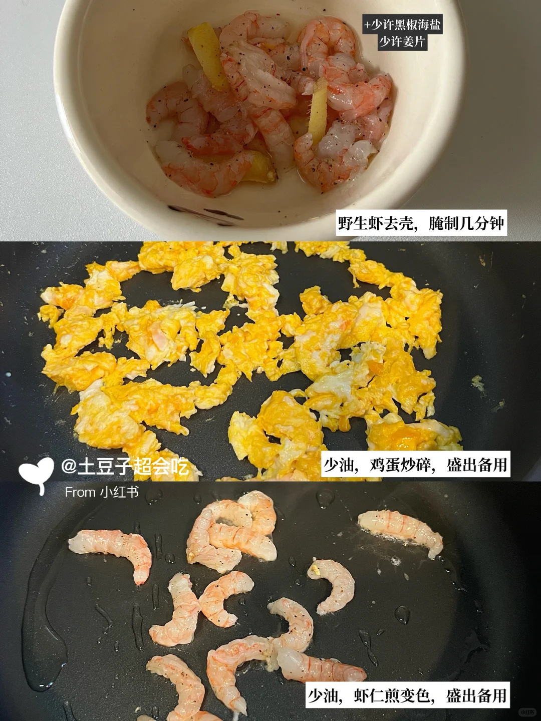 🍤 食材:空心菜、鸡蛋、虾仁/野生虾
