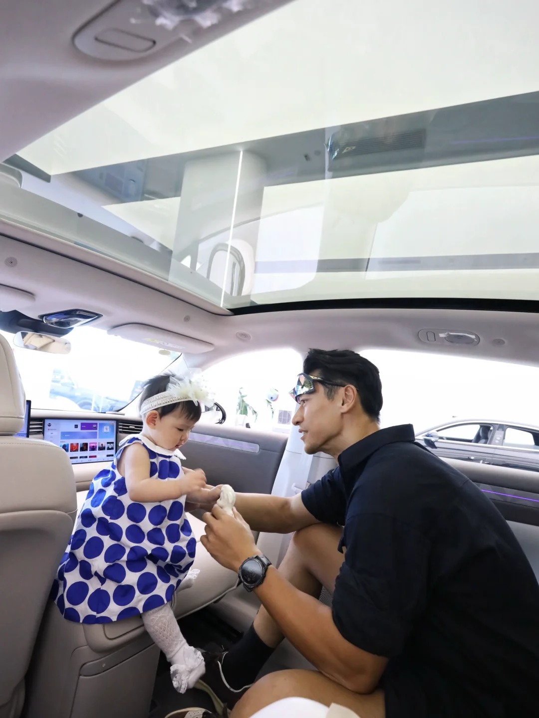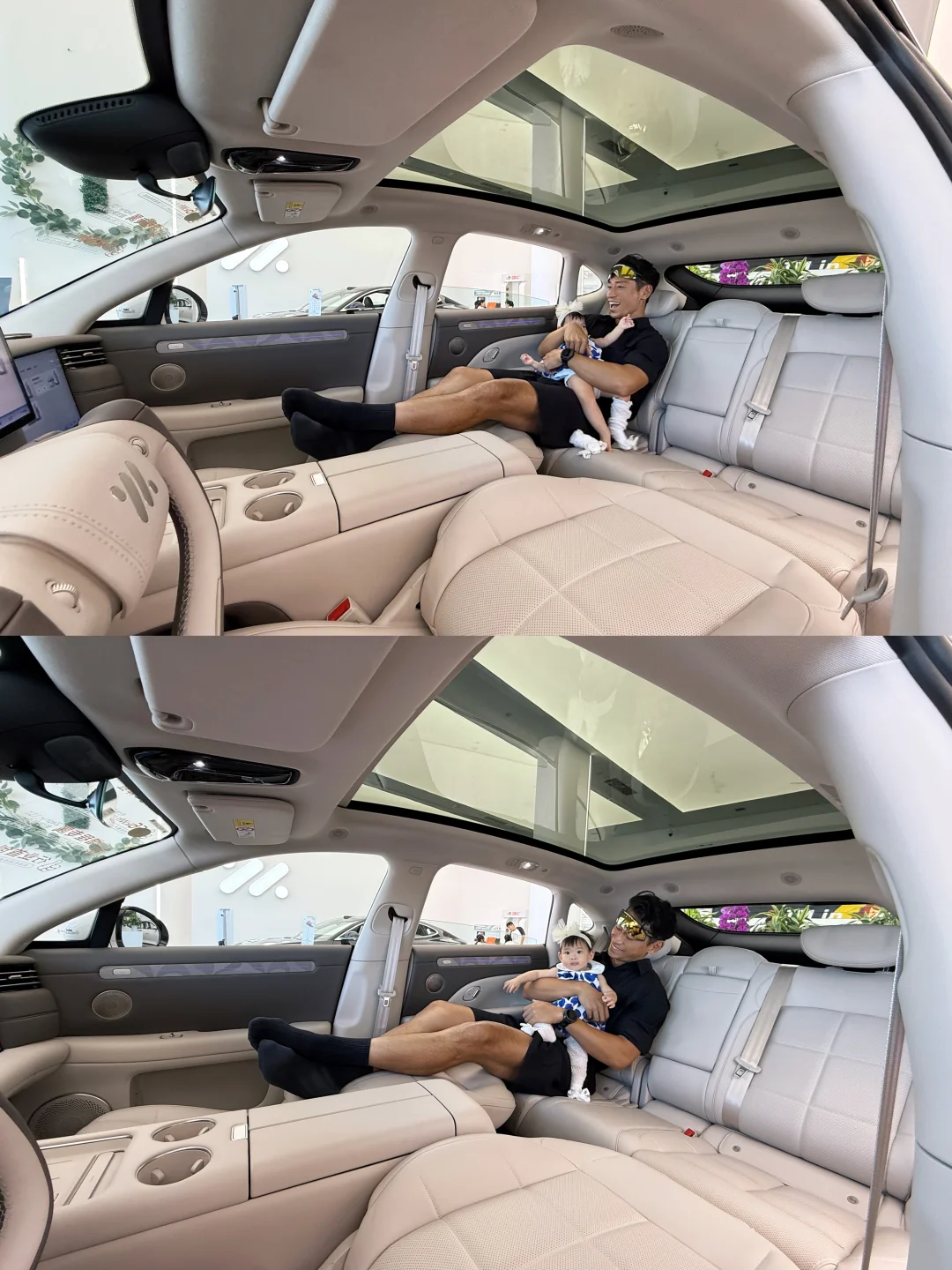 坐在后排宽敞到离谱,抱娃上下安全座椅也不用侧身子,