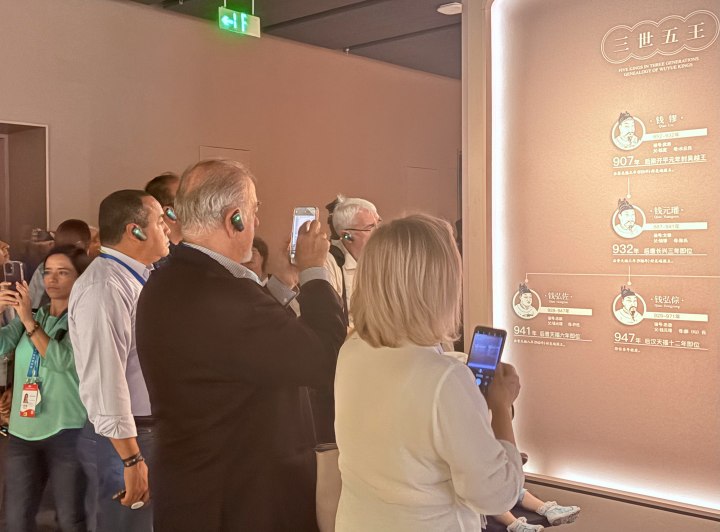 不过,更让她叹为观止的是博物馆自身的内涵,当她走进吴越文化博物馆,一路聆听双语导游讲解千年吴越的故事,不禁对奠定“上有天堂下有苏杭”的吴越王钱镠肃然起敬。