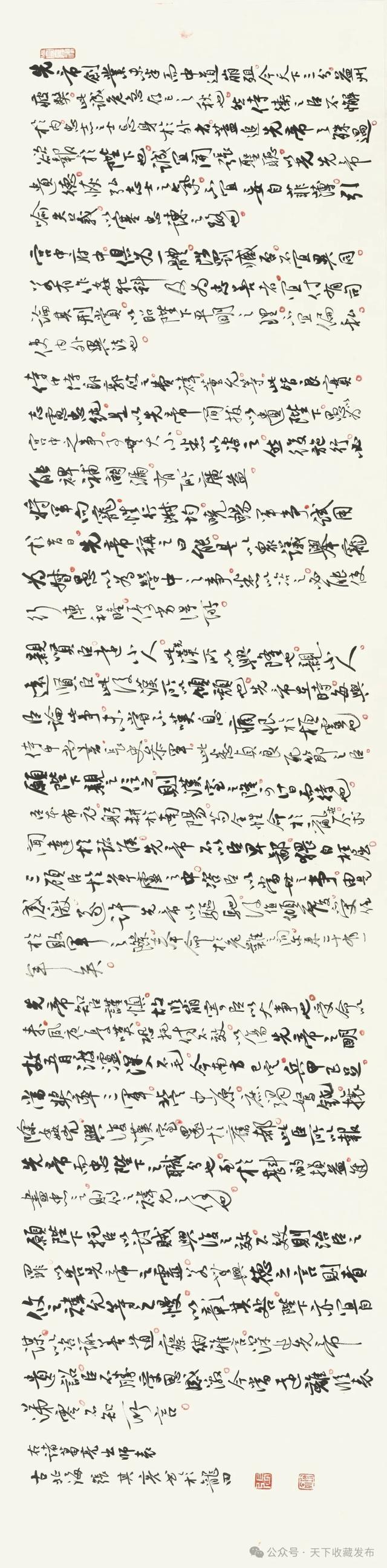 这次回乡展共展出作品百余幅,均为其近几年创作的精品,根植传统,追求多元,以行书为主,形式多样,从笔墨细腻、耐人细品的小幅精品,到气势恢宏、气韵贯通的长卷大作,每一幅作品都是他艺术思考的结晶,充分展示了张其亮先生对米芾书法风格的深度探索与创新演绎,更让观众得以领略他在书法领域深耕多年所铸就的艺术风格与成就。