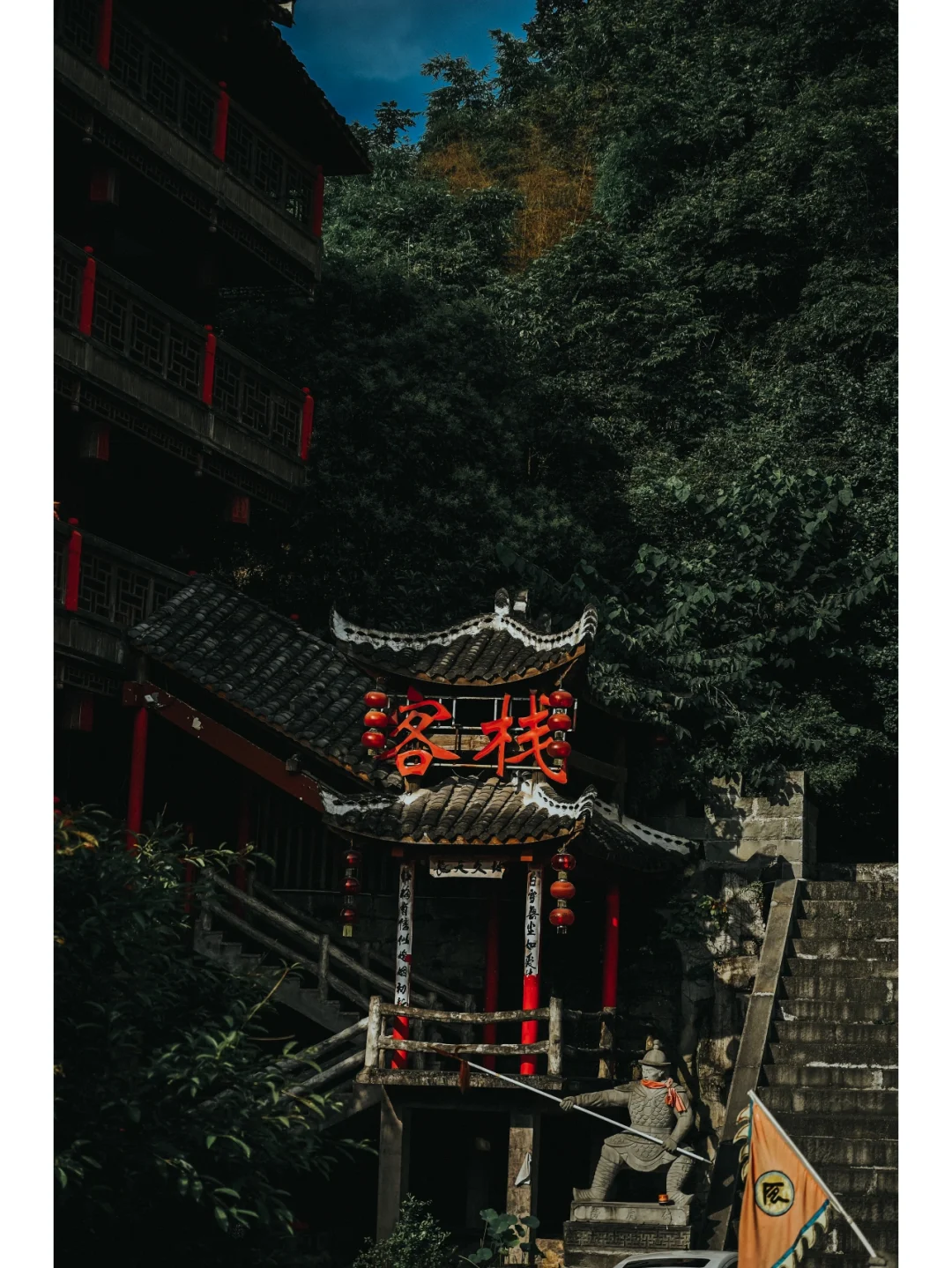 7月的重庆如同火炉般热辣,趁着周末,赶紧来避暑胜地的石柱游玩🖼 这次三三给大家推荐的是免门票的千年土家古寨—万寿古寨📜 __ 📮景点/万寿古寨 🎫门票/0元 📍地址/重庆市石柱县南宾镇红星村宝鼎山下 __ 📜 万寿古寨特色 这是重庆首批乡村文化乐园,也是非物质文化保护传承基地,也是土家第一寨,寨子里面保存着石柱八百多年的土司文化,有着极具特色的土家吊脚楼建筑群🛖 📜 万寿古寨必打卡 ▪️ 雄镇西南 在大门的上方有一个“雄镇西南”的牌匾,这就是雄镇西南由何而来。 ▫️白杆兵二十四势雕像群 沿路两行各不相同的士兵名叫白杆兵,是明朝巾帼英雄秦良玉跟他的丈夫马千乘所创,因其所持兵器叫白杆枪! ◾️大都督府 大都督府曾是秦良玉办公和居住的地方,南明隆武皇帝曾在这里加封秦良玉为太子太保忠贞侯,这里仅仅是大都督府样貌的还原,原址在现在石柱县城里面的太保祠,已被文革时期毁坏了! ▫️忠烈祠 忠烈祠里面供奉有秦良玉一家四口的铜像,侯家庄一役中为国捐躯,旁边这一位便是她的儿子马祥麟,马祥麟也是一位驰骋疆场的大将军,后来在守卫襄阳之战中战死沙场! __ 📷拍照打卡 ▫️首图是在吊脚楼二楼俯拍 ◾️依靠在餐厅3楼窗边拍 ▫️在红色回廊拍