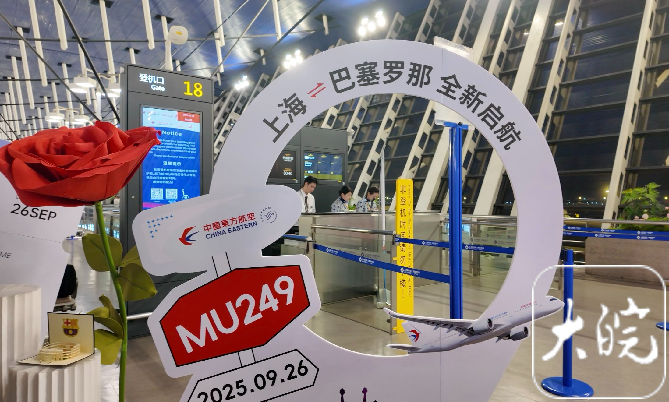 大皖新闻讯2025年9月26日00:54,东航MU249航班从上海浦东国际机场起飞,搭载284名旅客飞往西班牙巴塞罗那。作为东航“上海—巴塞罗那”航线的首航航班,此次开航恰逢国庆长假前夕,吸引众多旅客乘坐,首航航班客座率超过95%。
