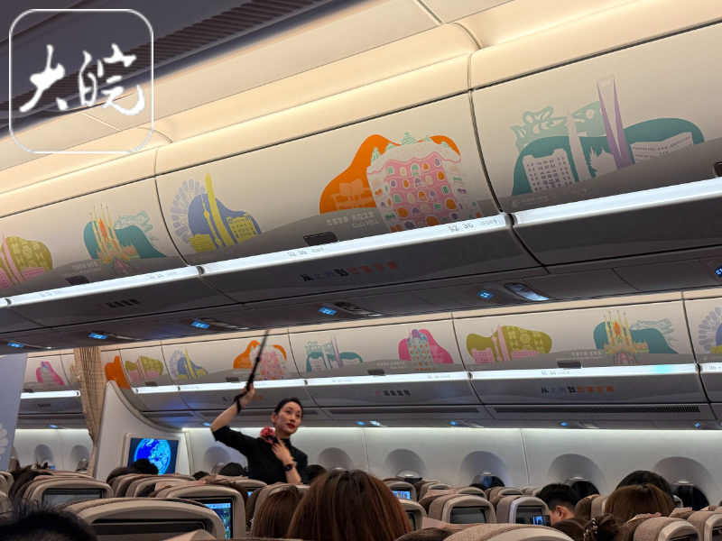 值得一提的是,此次的首航航班,东航特别选用机号为B32FQ的空客A350飞机执飞。在今年8月5日,该飞机曾经执行“西班牙艺术季在云端”主题航班,其客舱内饰设计巧妙融合了巴塞罗那高迪建筑的经典艺术元素与上海外滩的百年建筑风情,将圣家堂标志性的螺旋线条、米拉之家起伏的波浪形立面、巴特罗之家奇幻的骨骼状立柱等元素,融入到客舱壁板装饰与行李架贴纸设计中。首航旅客步入客舱,仿佛置身于一座空中建筑艺术馆,在云端即可感受巴塞罗那建筑的艺术魅力。