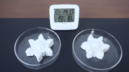 凝胶冰雪(左)升温不化水