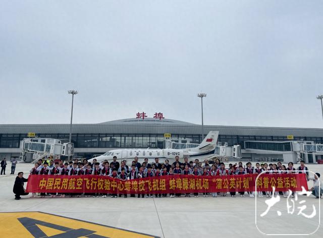 “蒲公英计划”始于2014年,是中国民用航空飞行校验中心发起的品牌科普公益活动。此次活动选择在校飞中的蚌埠滕湖机场举办,正值机场通航前运营筹备的关键阶段,不仅为学生打开了接触民航的“窗口”,更以生动实践传递了民航事业的责任与温度。