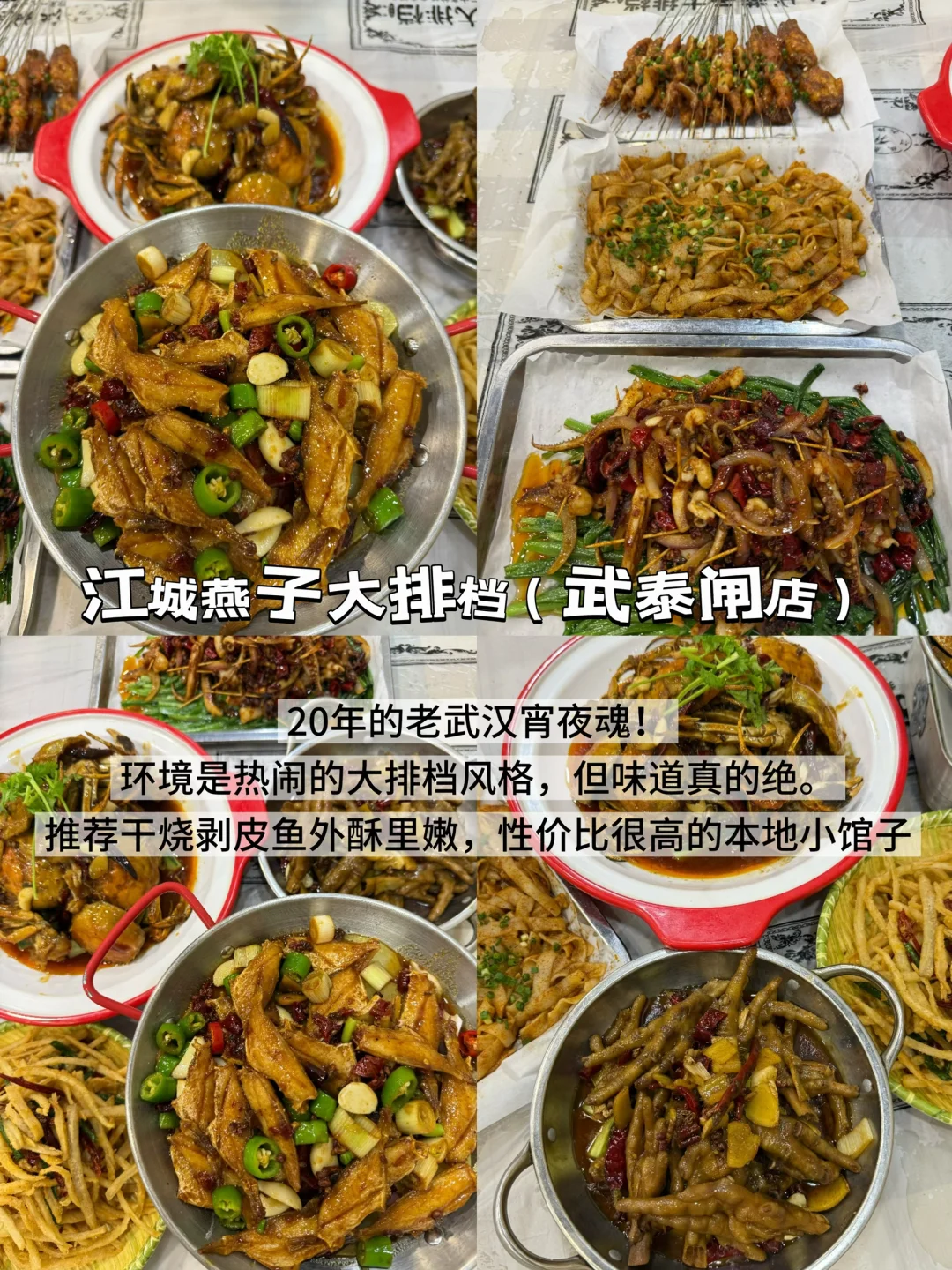 ✅江城燕子大排档(武泰闸店):20年老字号大排档,干烧剥皮鱼外酥里嫩,性价比超高。