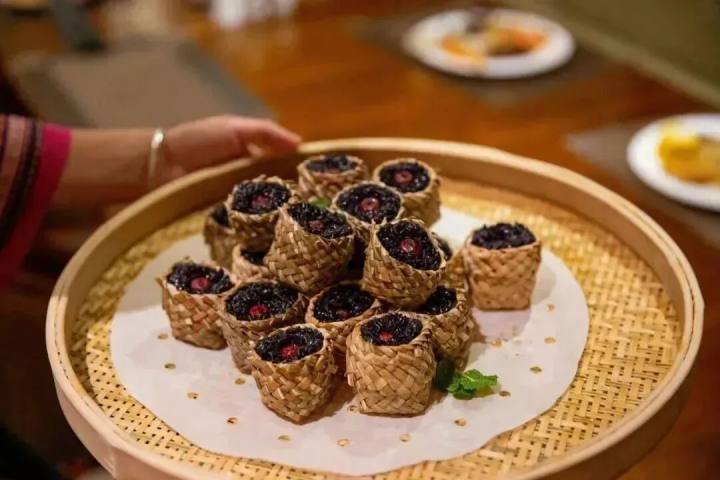 来丽水,还可以尝尝畲乡乌饭,畲乡乌饭又称“青精饭”,在三月初三食用,祭祀稻神。乌米饭的植物染料来源于乌饭树,畲乡的乌米饭常用木甑子,土灶中火慢煮四十分钟左右,待到掀盖时刻,蒸汽散开,但见一桶乌米饭墨如磐石。