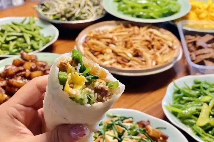 丽水人的饮食地图丰富多彩,在莲都人的传统美食中,卷饼绝对是当之无愧的顶流。薄而糯软的饼皮,搭配满满一桌各色美食:清爽的蔬菜、料汁丰富的肉菜、鲜美的海鲜、灵魂炸粉丝……各种食材的味道在口中迸发,每一口都是满满的幸福感~