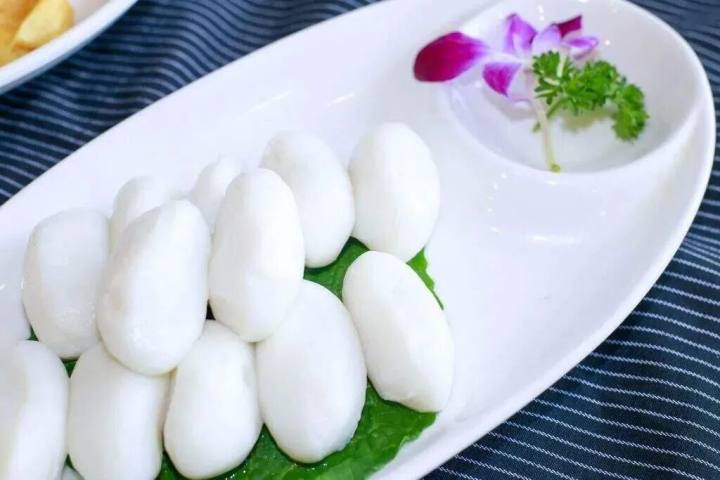 作为江南蚕桑之乡,长兴将鱼圆做成蚕茧形状,寓意祈求风调雨顺、蚕桑丰收。茧式鱼圆大小如一,形如蚕茧,又略有弯弧,色如蚕丝,洁白无瑕,嫩如豆腐,盛于清汤之中,几颗菜心点缀,一清二白,甚是清爽悦目。