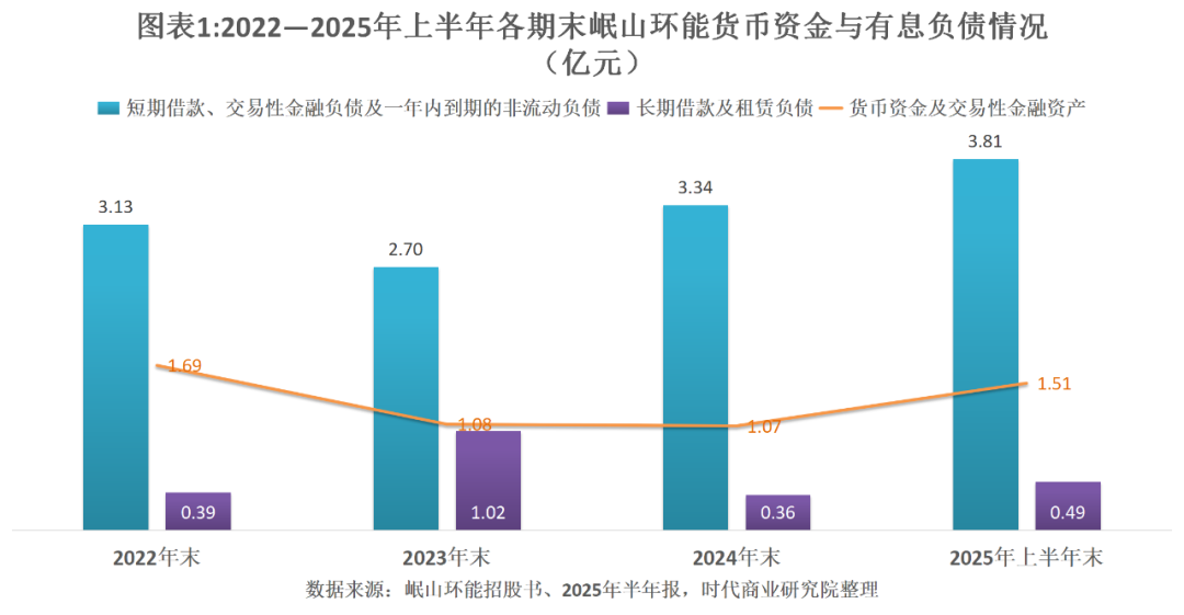 招股书和财报显示,2022—2025年上半年各期末,岷山环能的货币资金与有息负债的差距不断扩大。