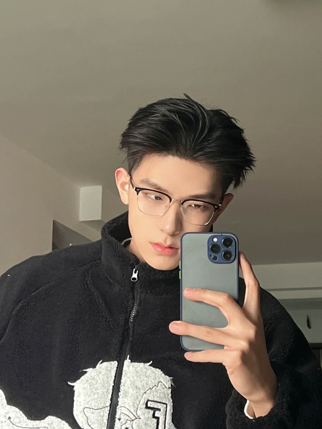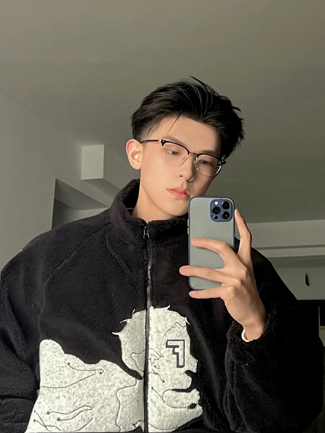 今天是剪短头发第二天 戴眼镜和不戴眼镜 你更喜欢看哪一个[得意R] 库宝的ootd 绒绒外套-feeltrend 眼镜-maekin🐱舒适不夹脸 裤子-King prince