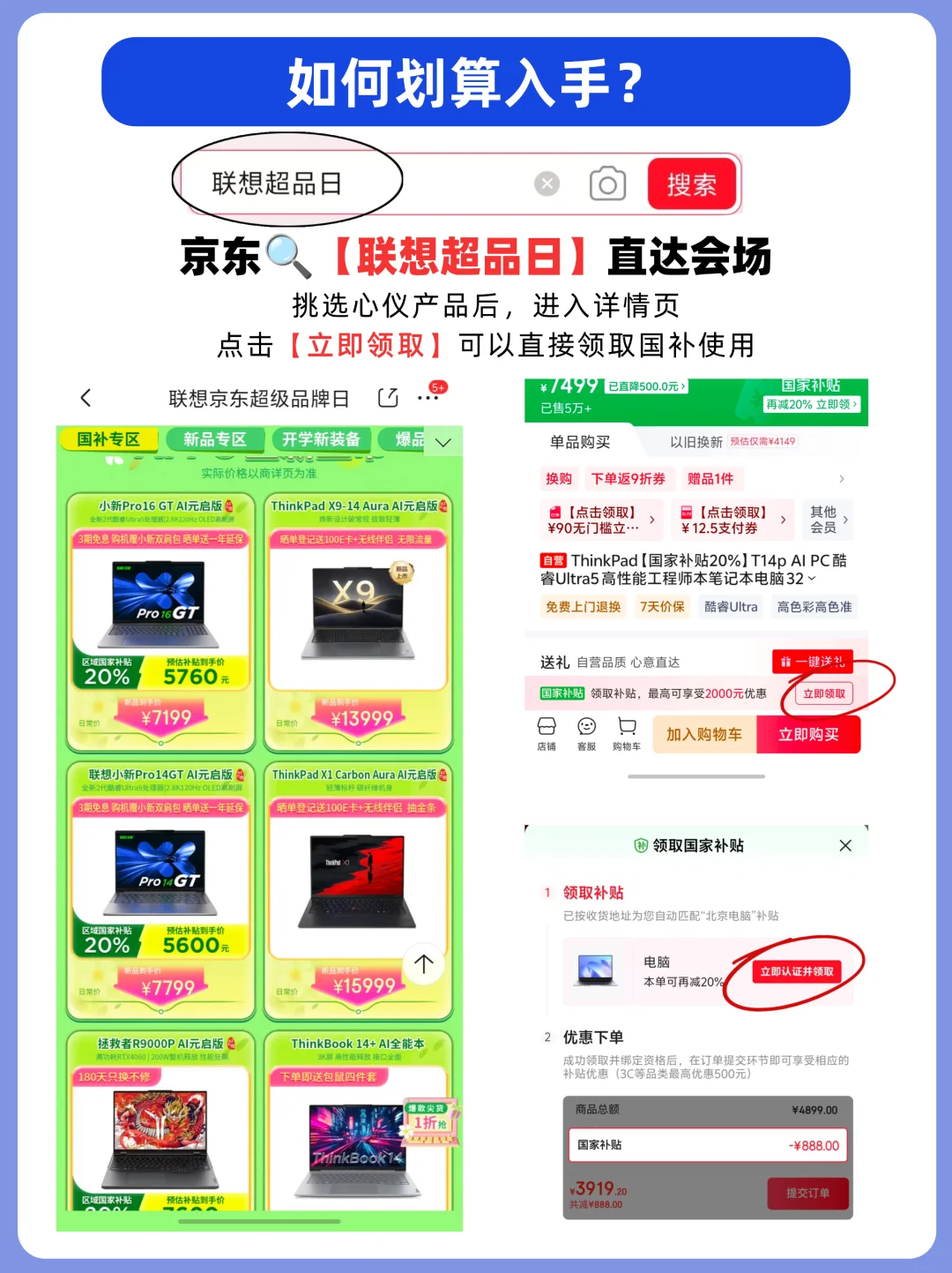 推荐大家去参加联想超级品牌日,现在去京东🔍【联想超品日】就可以直达会场,挑选心仪产品后,进入详情页点击下方的立即领取,可以直接领取国补,最后云闪付下单支付即可~