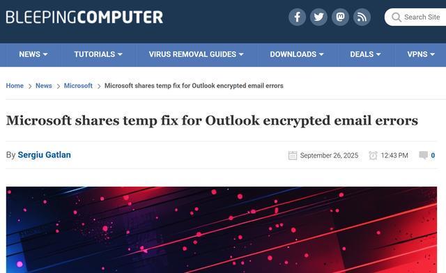[环球网科技综合报道]9月27日消息,据科技媒体bleepingcomputer报道,微软官方近日已承认经典版Outlook桌面客户端存在程序漏洞(BUG),该漏洞导致用户在尝试打开来自外部组织(其他租户)的OMEv2加密邮件时操作失败,同时会弹出“正在为信息权限管理配置计算机”的错误提示,对跨组织间的邮件沟通造成影响。