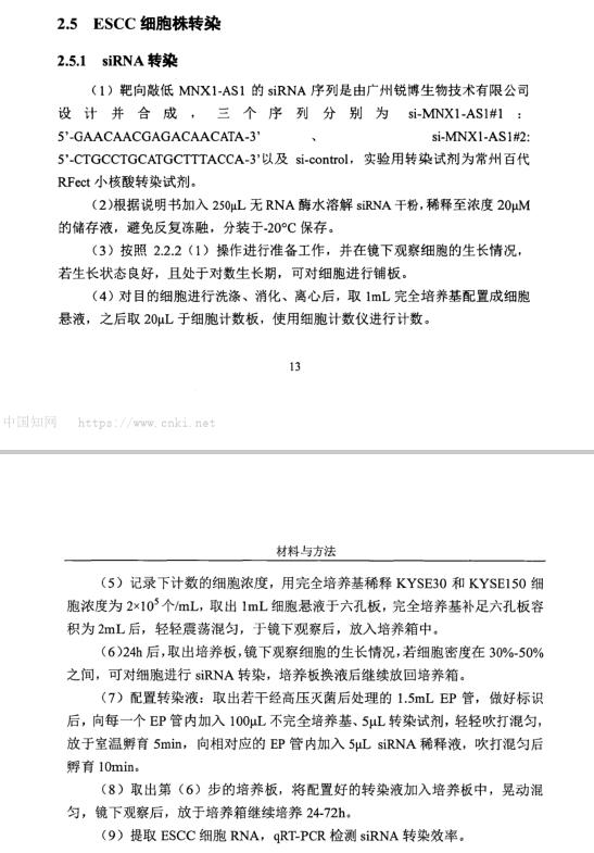 相关文献:LncRNA MNX1-AS1调控食管鳞癌发生发展的作用及分子机理探讨