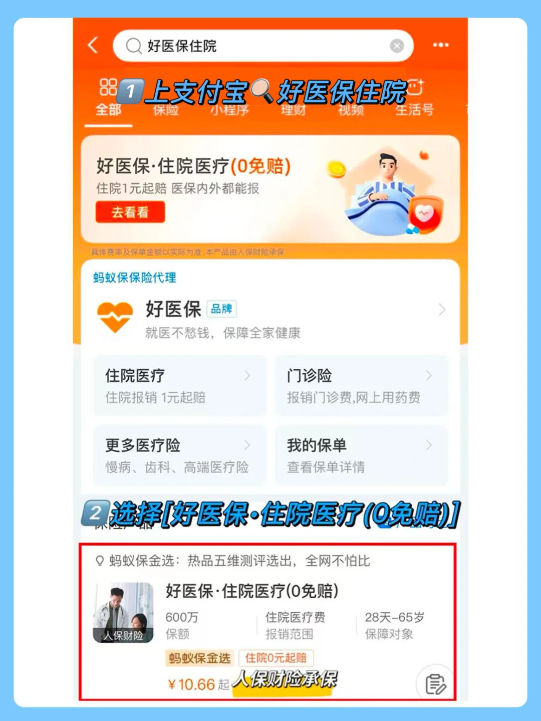 上支付宝搜🔍“好医保住院”,选“人保财险”承保的那款。出生满28天,只要过健康告知就能买,有医保的话搭配买更划算。