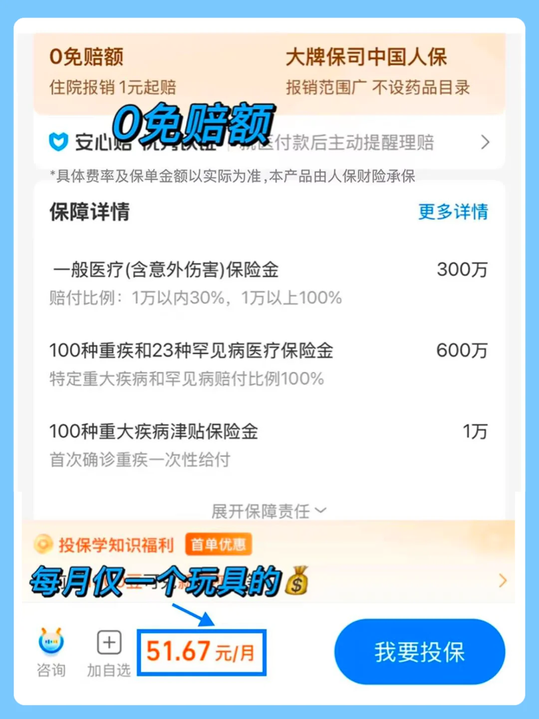 它真的做到了0免赔额,只要是保障范围内的,哪怕住院只花1块钱也能报销。平时娃发烧住院,随随便便上千,有这个能报一点是一点,实实在在省到钱了。