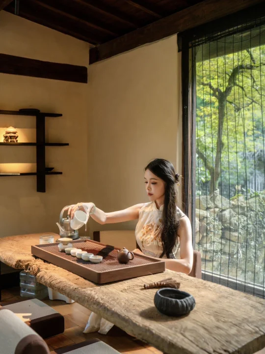 ▪️民宿还新晋了茶空间🍵约上三两好友,在静谧的茶室,享受一个悠然的下午,茶室整体是原木系内饰,营造出一种东方禅意的氛围,窗外绿意🍃泡上一壶好茶,让人瞬间放松