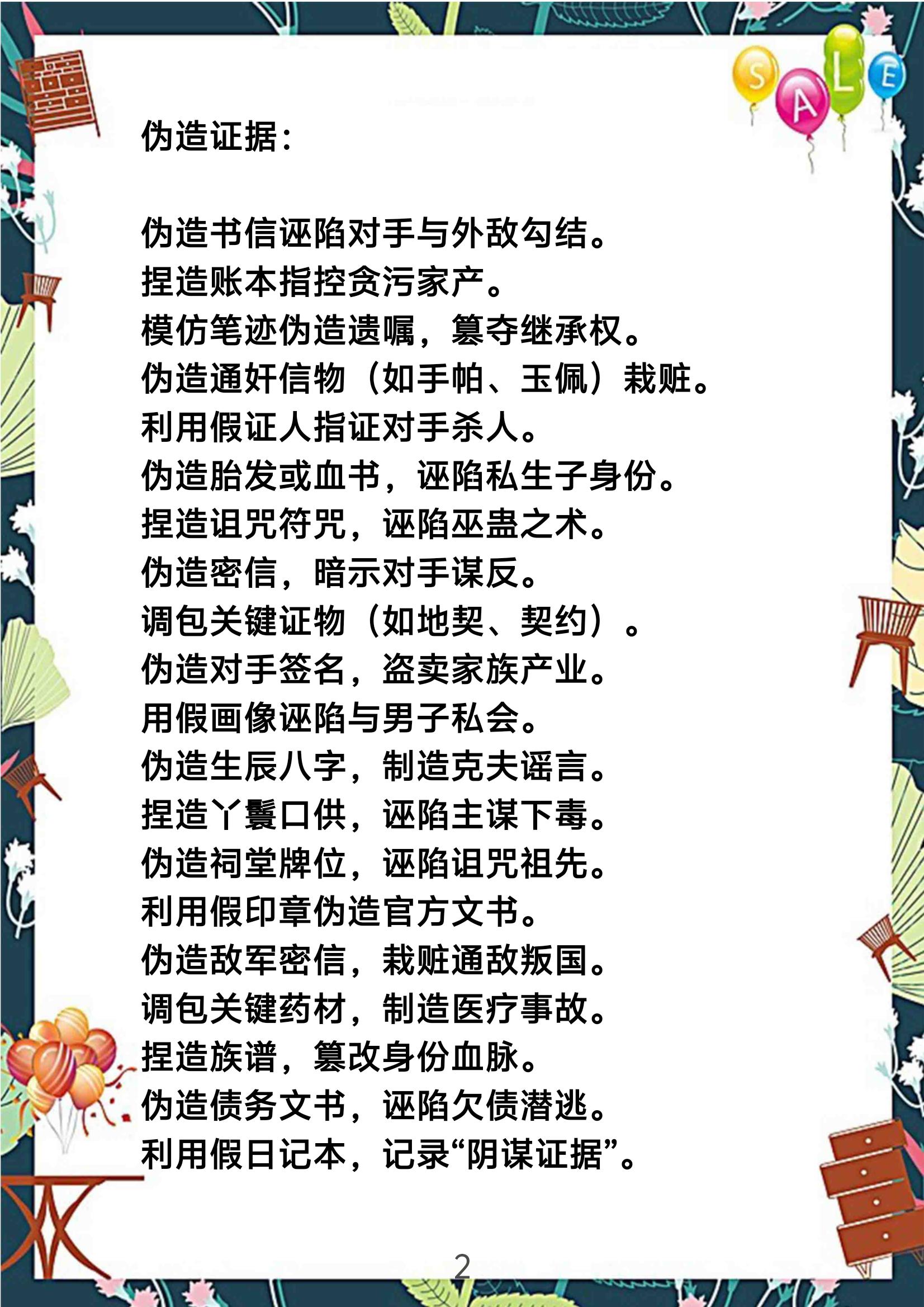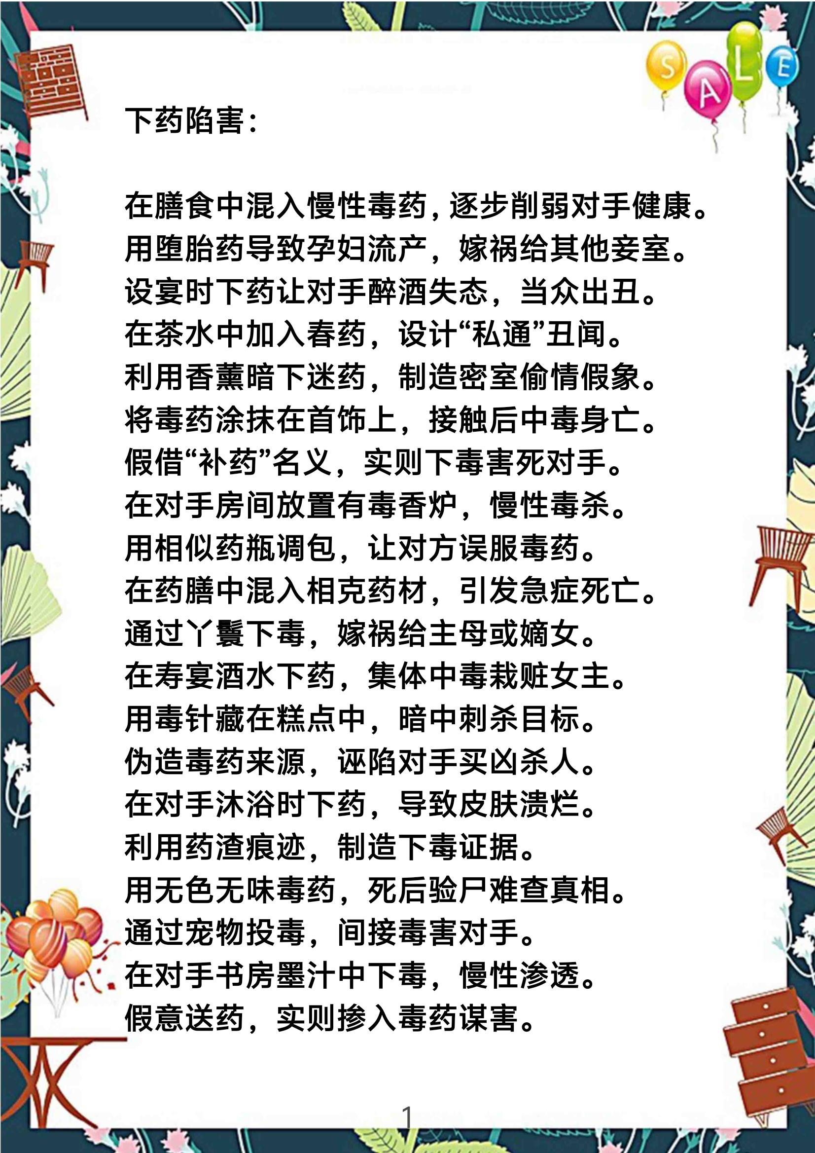 古代宅斗下药、陷害与反击素材。
