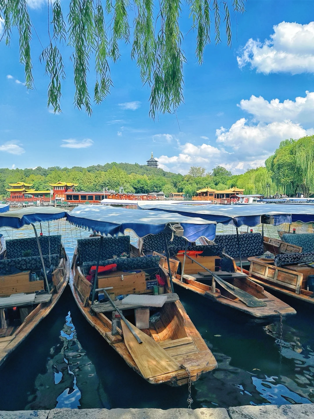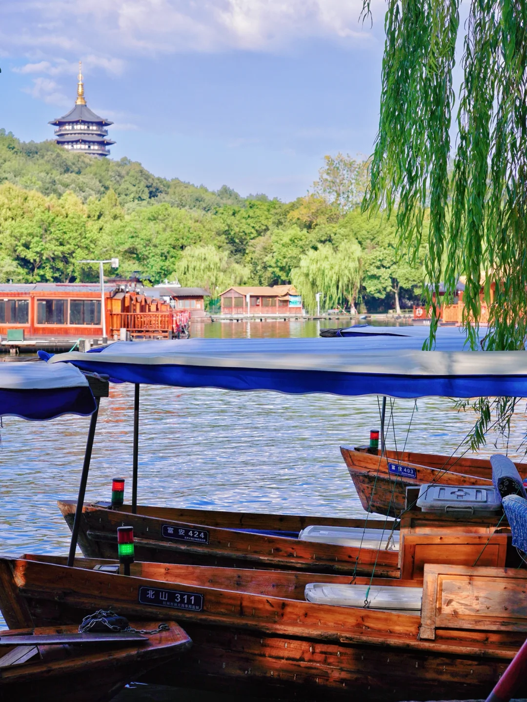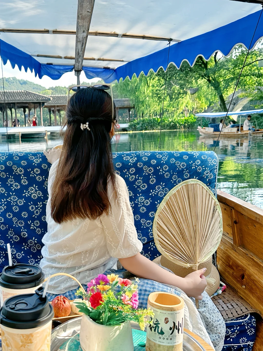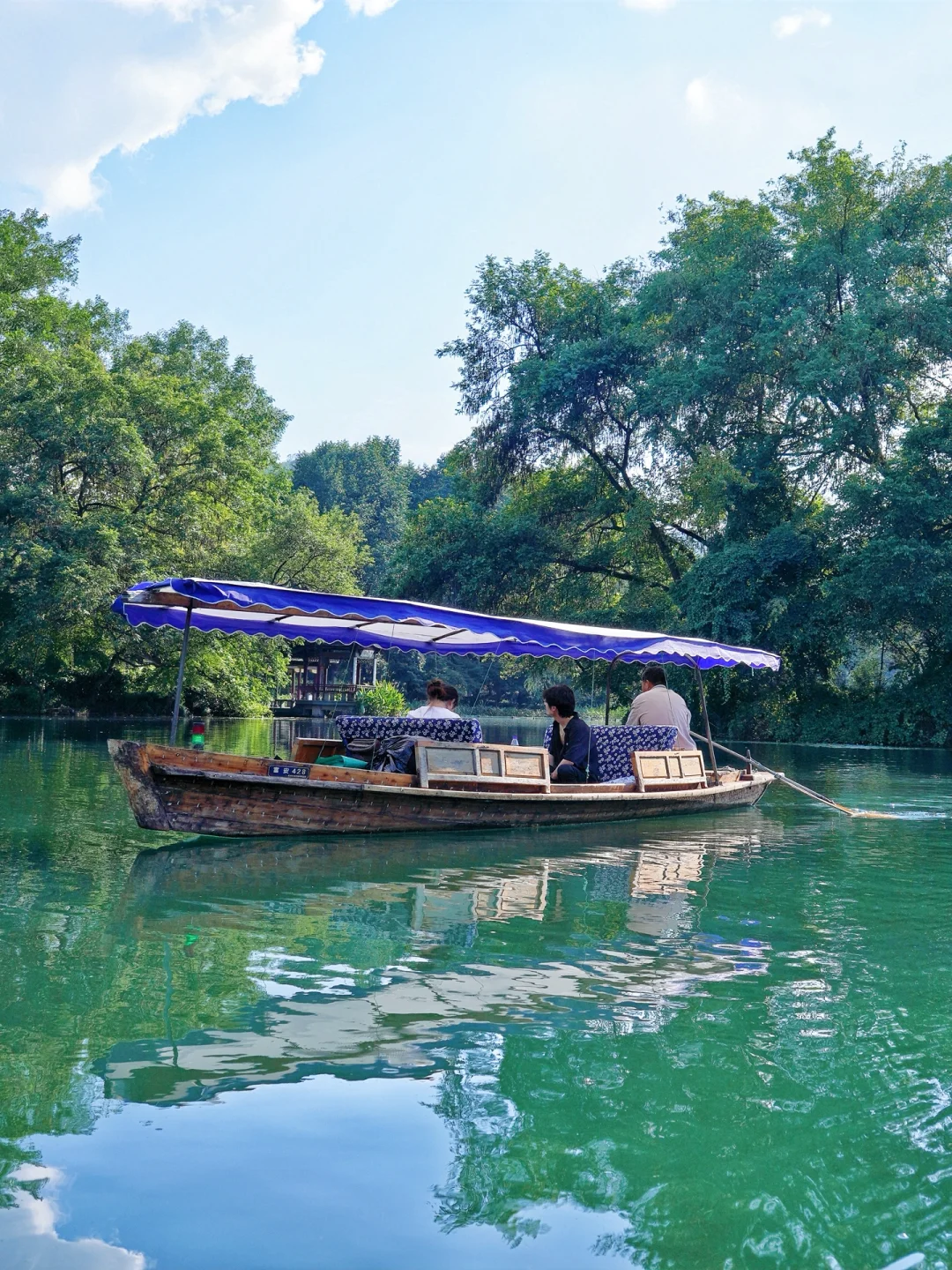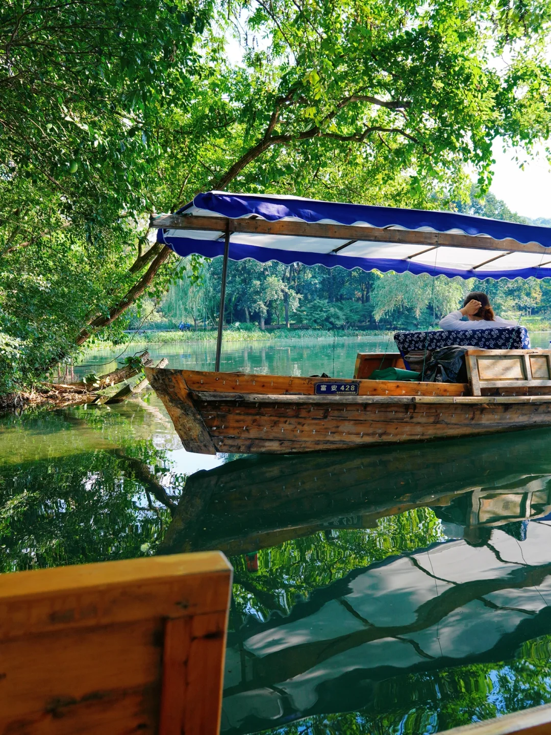 国庆来杭州,一定要来坐一趟西湖的手划船🛶。乌龟潭路线真的绝美!慢悠悠闯进里西湖的绿野仙踪🍃,在船上看风景,观鱼🐟,吹着风发呆,被绿意包围,真的好治愈!🥰