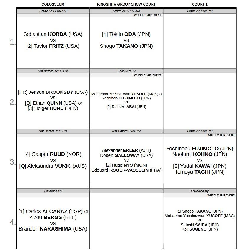 记者JoseMorgado(网球)发推特报道,东京站周日(四分之一决赛)。鲁内-奎因之间的胜者明天必须早早回来。